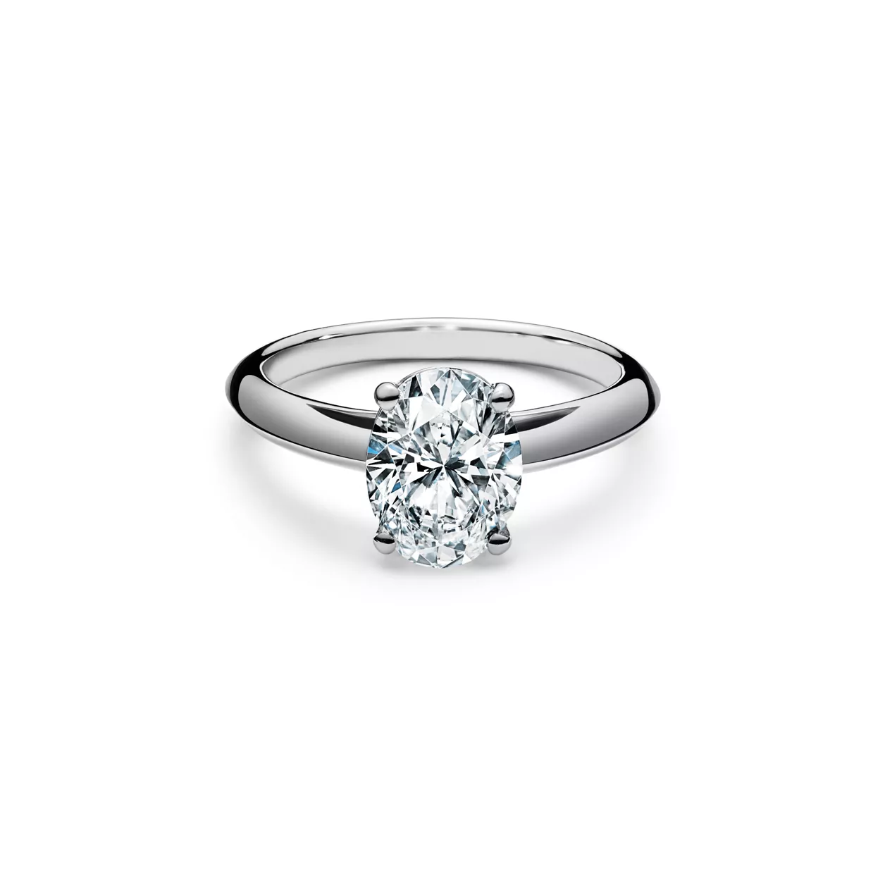 Masterfully cut and crafted, this striking oval diamond is proof that regardless of the size, a Tiffany diamond will always appear more radiant than others. The simple and delicate band paired with the timeless, elongated shape of the diamond create a ring that is striking in its simplicity. At Tiffany, we ethically source our diamonds. Integrity and social responsibility are at the core of our sourcing practices.