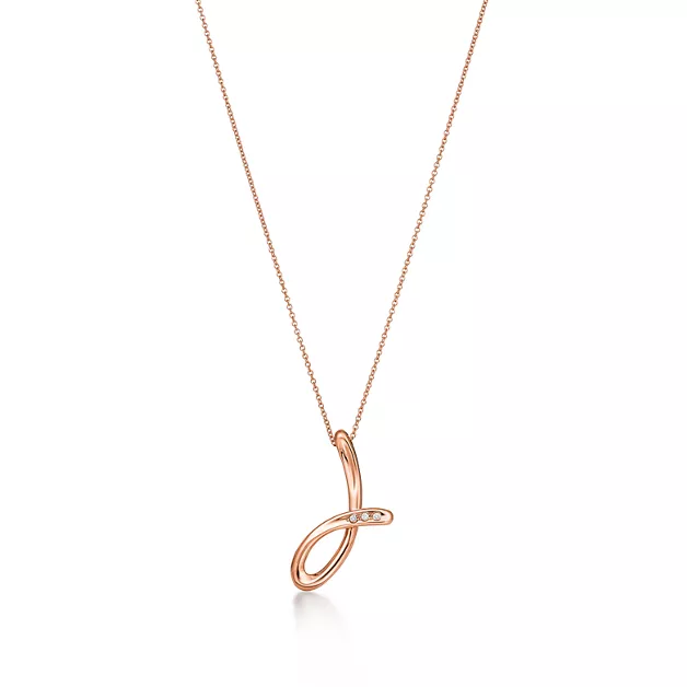 - Elsa Peretti®:Small Alphabet Pendant in Rose Gold with Diamonds