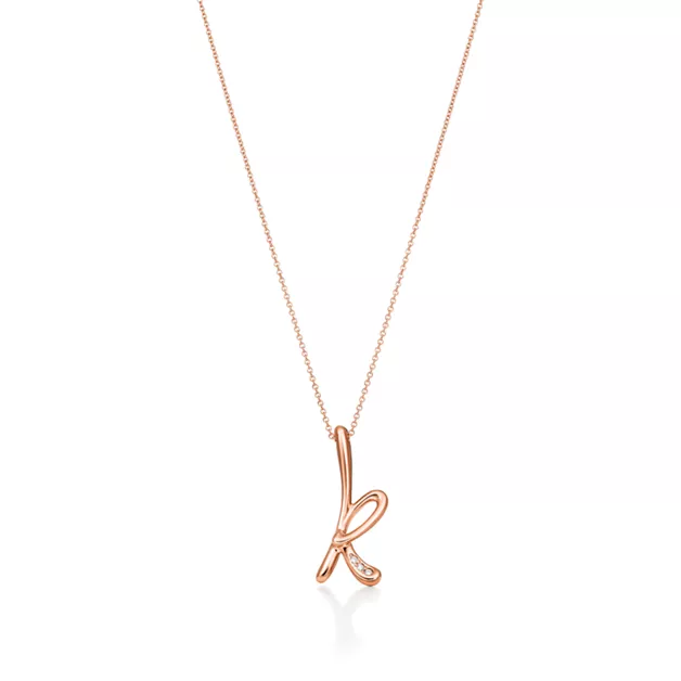 - Elsa Peretti®:Small Alphabet Pendant in Rose Gold with Diamonds