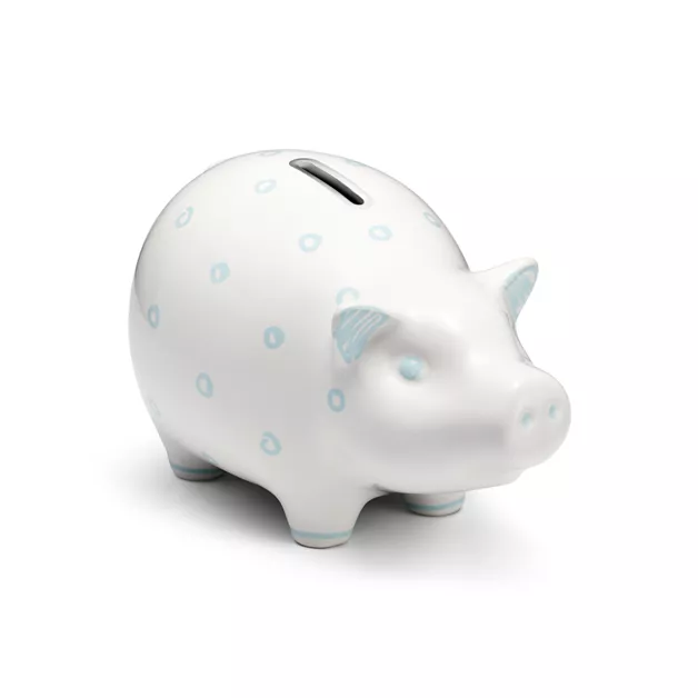5. Dot Piggy Bank in Earthenware with Blue Accents