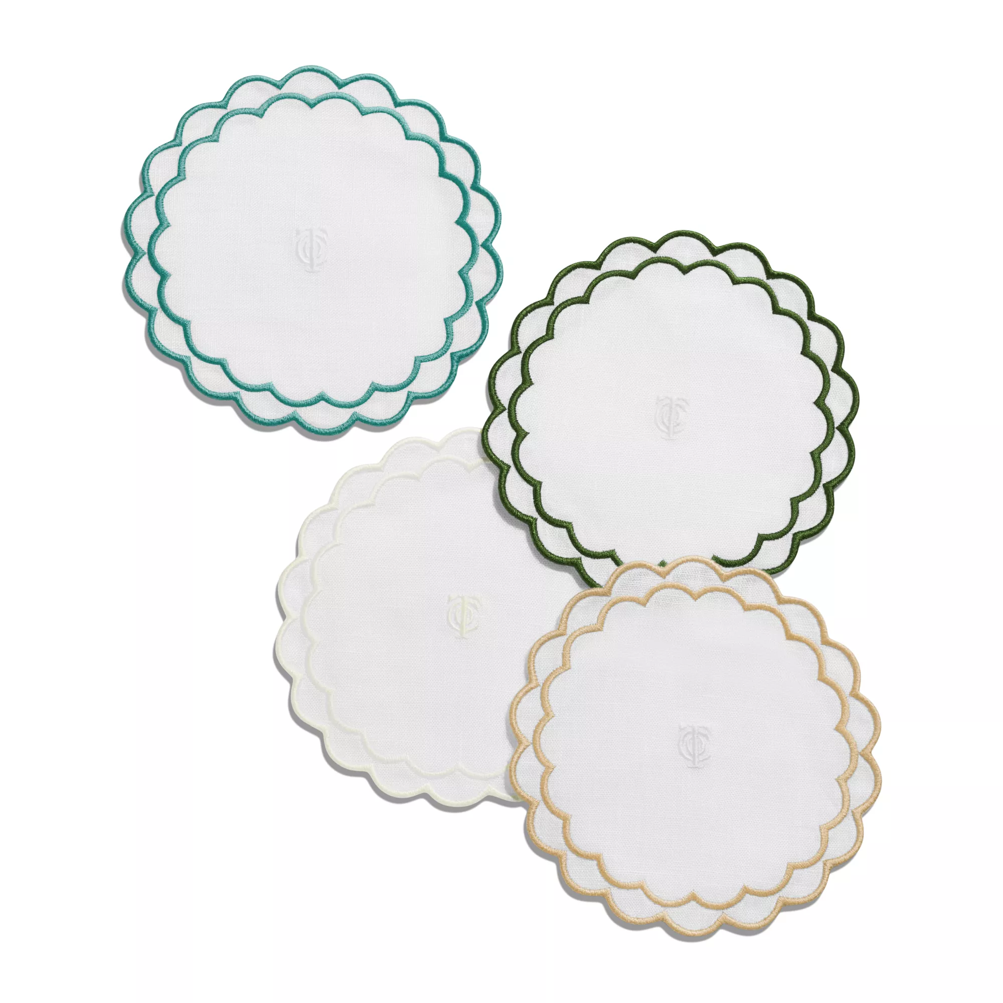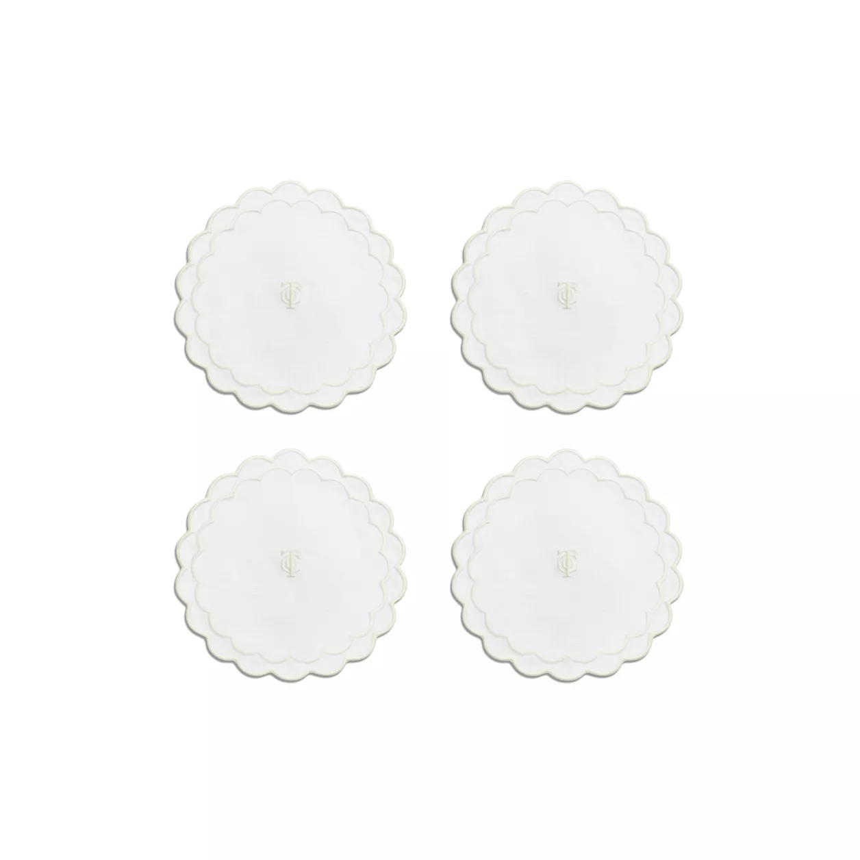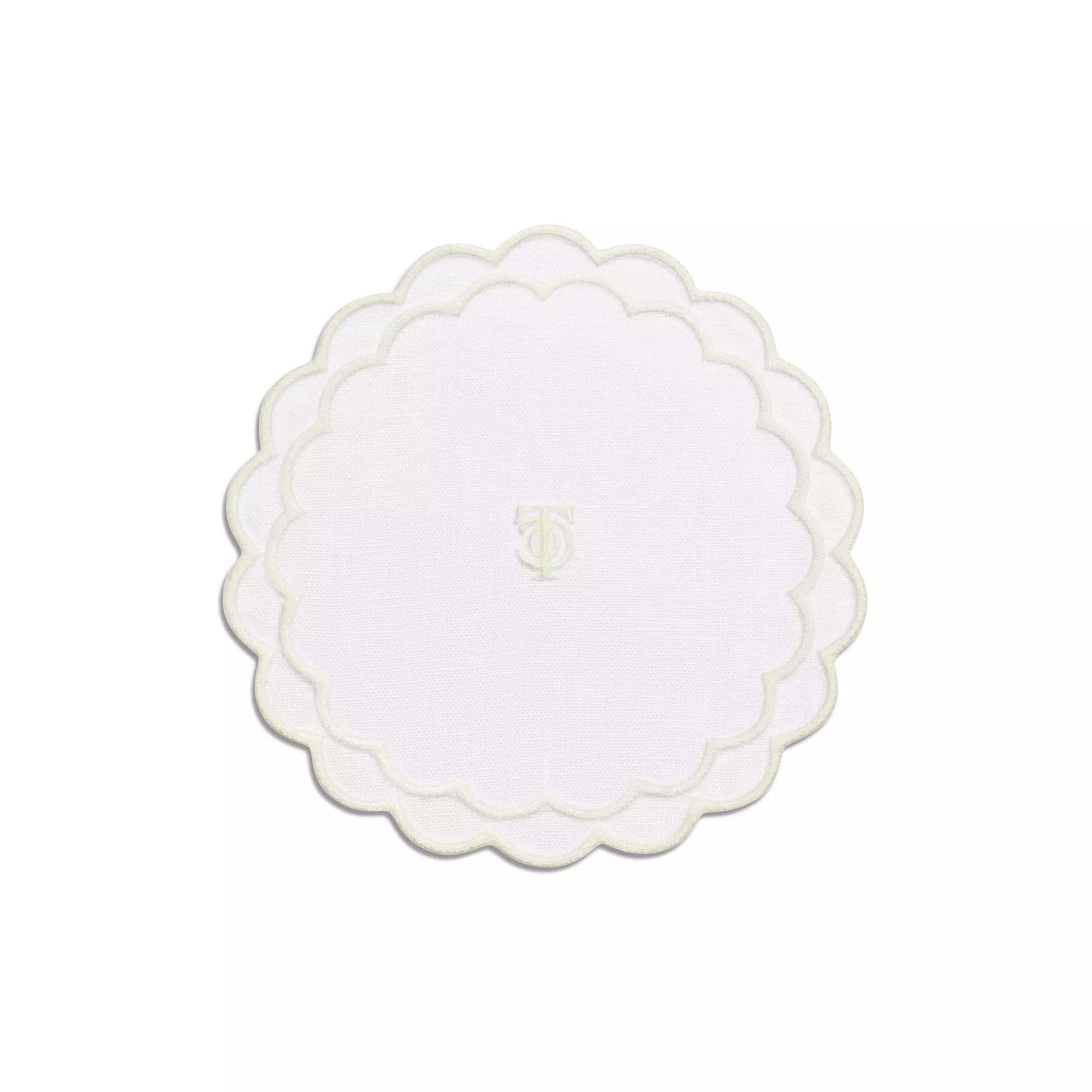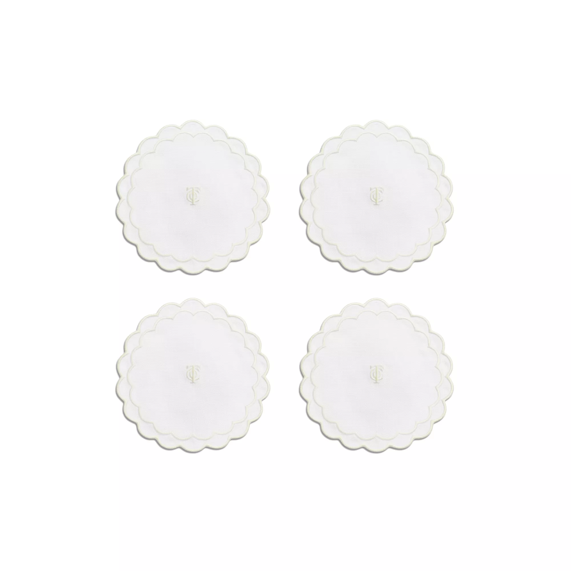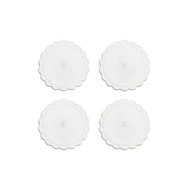 5. Tiffany Home Essentials:Scalloped Coasters in White Linen, Set of Four