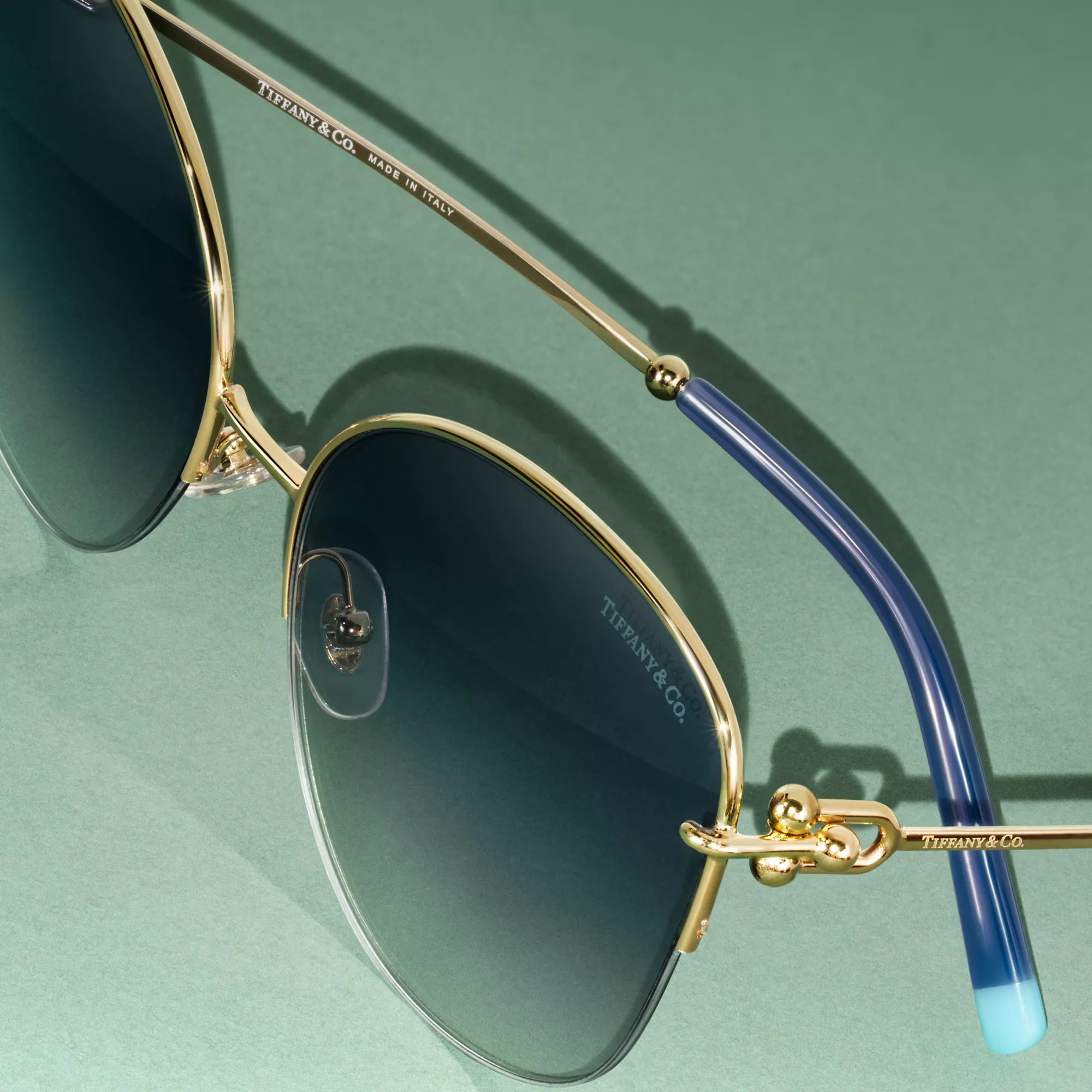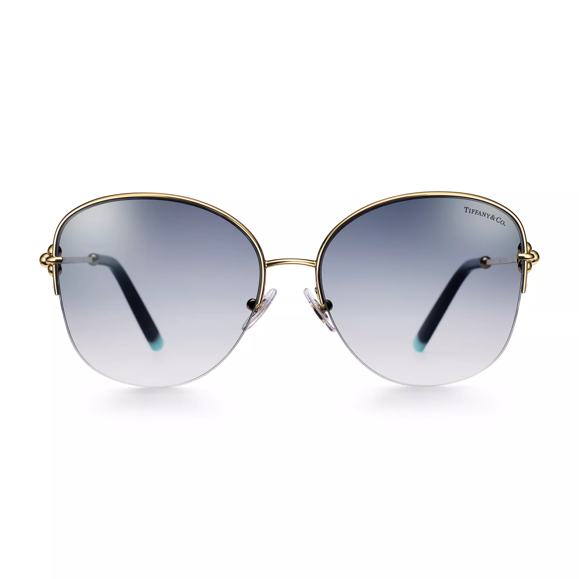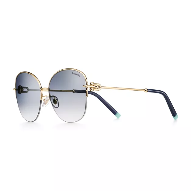 5. Tiffany HardWear:Sunglasses in Pale Gold-colored Metal with Blue Lenses