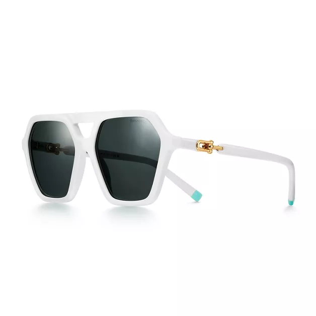 5. Tiffany HardWear:Sunglasses in White Acetate with Gray Lenses