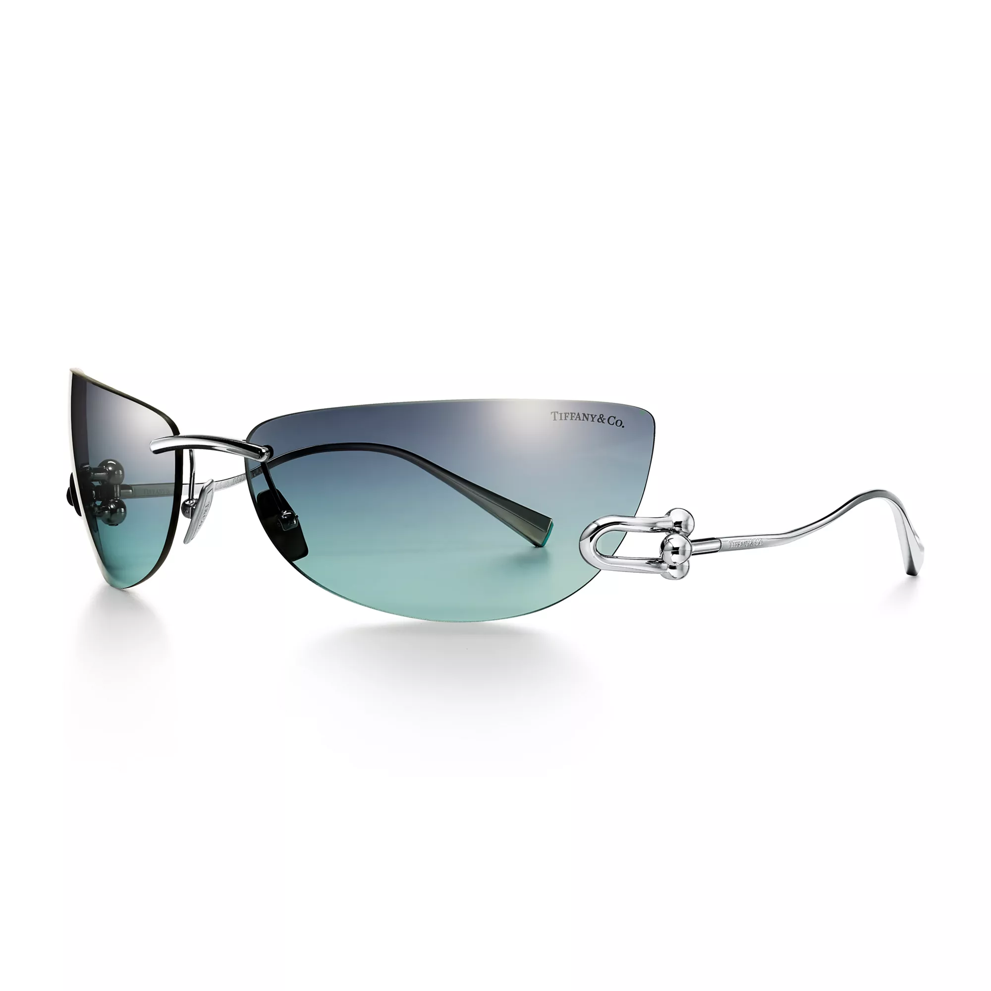 5. Tiffany HardWear:Sunglasses in White Gold-plated Metal with Tiffany Blue® Lenses