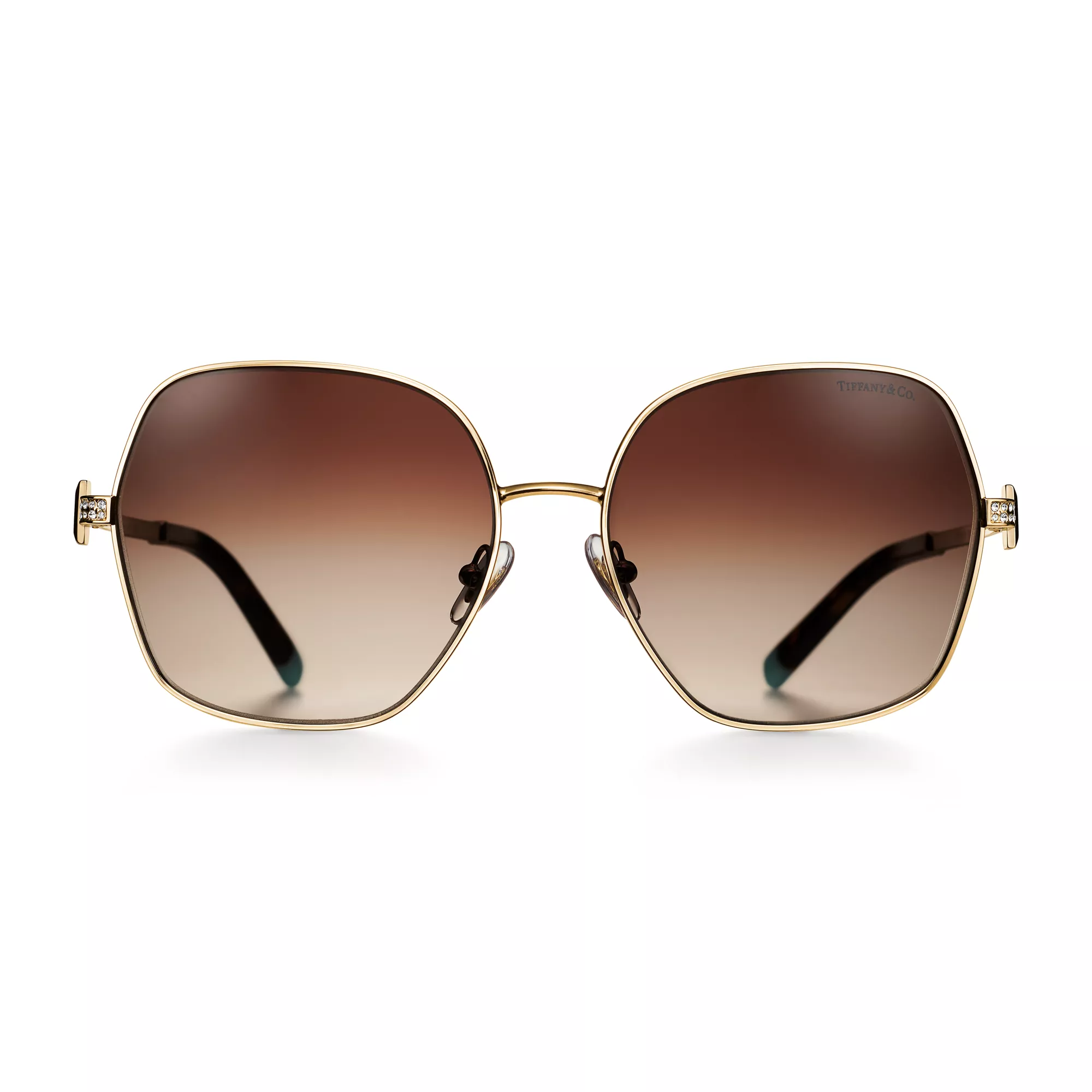 5. Tiffany T:Sunglasses in Pale Gold-colored Metal with Gradient Brown Lenses