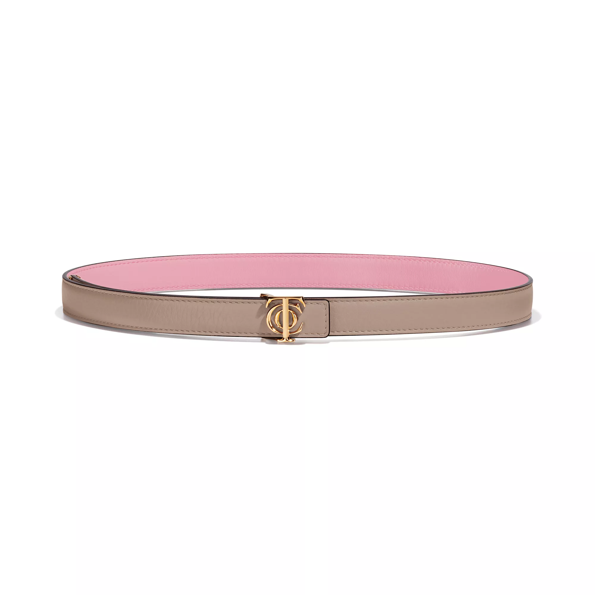 5. T&CO.®:Reversible Belt Strap in Taupe and Morganite Pink Leather, 20 mm Wide