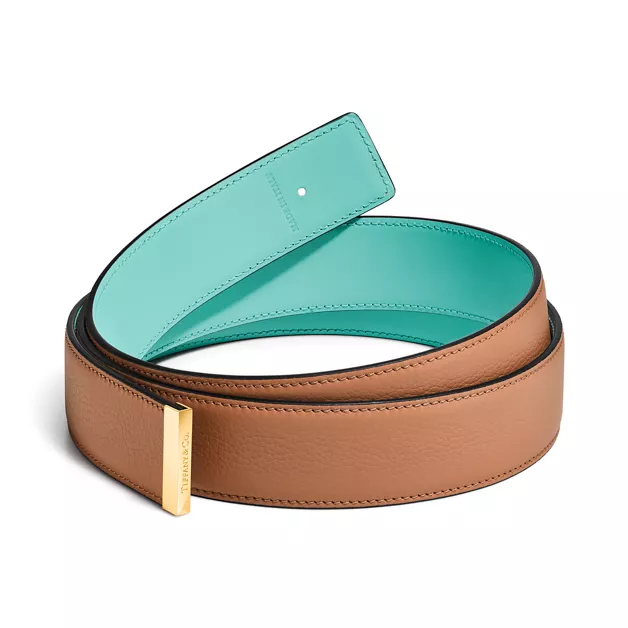 5. T&CO.®:Reversible Belt Strap in Topaz Brown & Tiffany Blue® Leather, 35 mm Wide