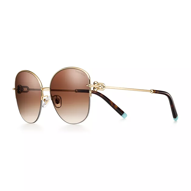 5. Tiffany HardWear:Sunglasses in Pale Gold-colored Metal with Brown Lenses