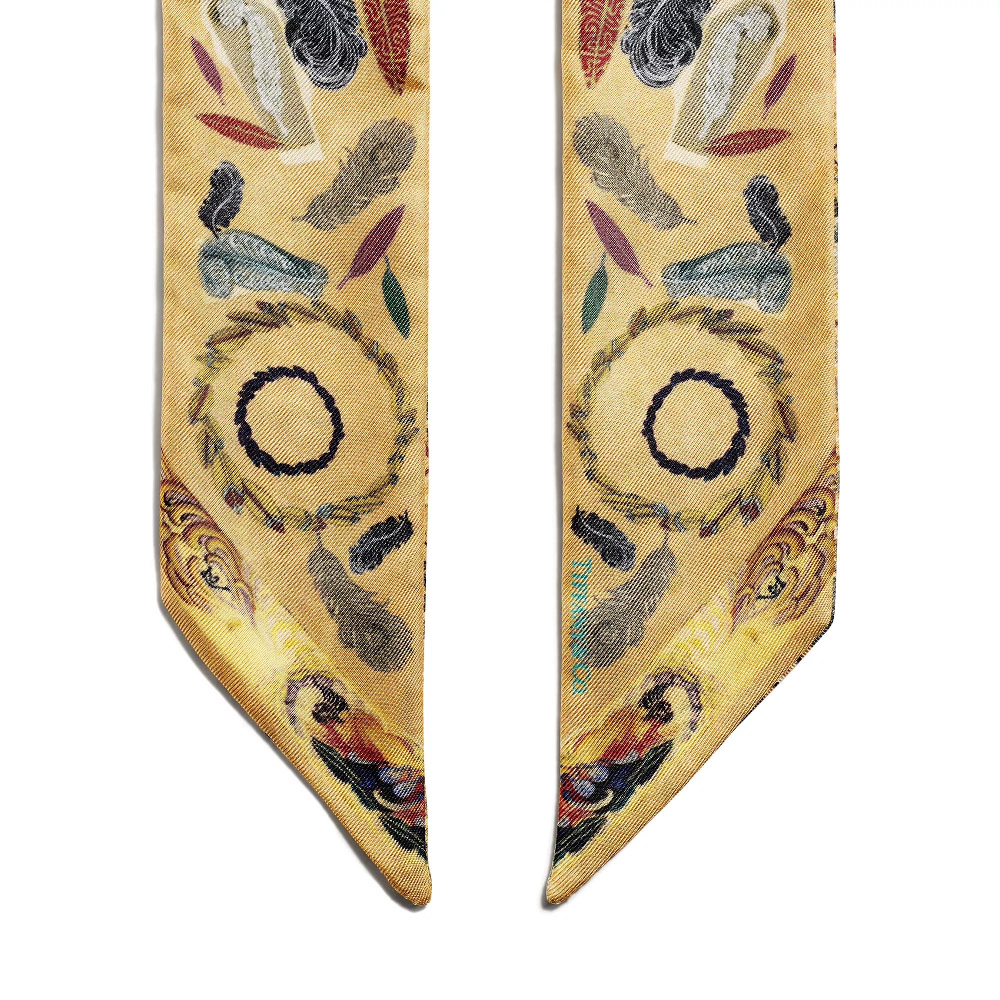 5. Tiffany Jardin:Feather Ribbon Scarf in Camel Brown Silk