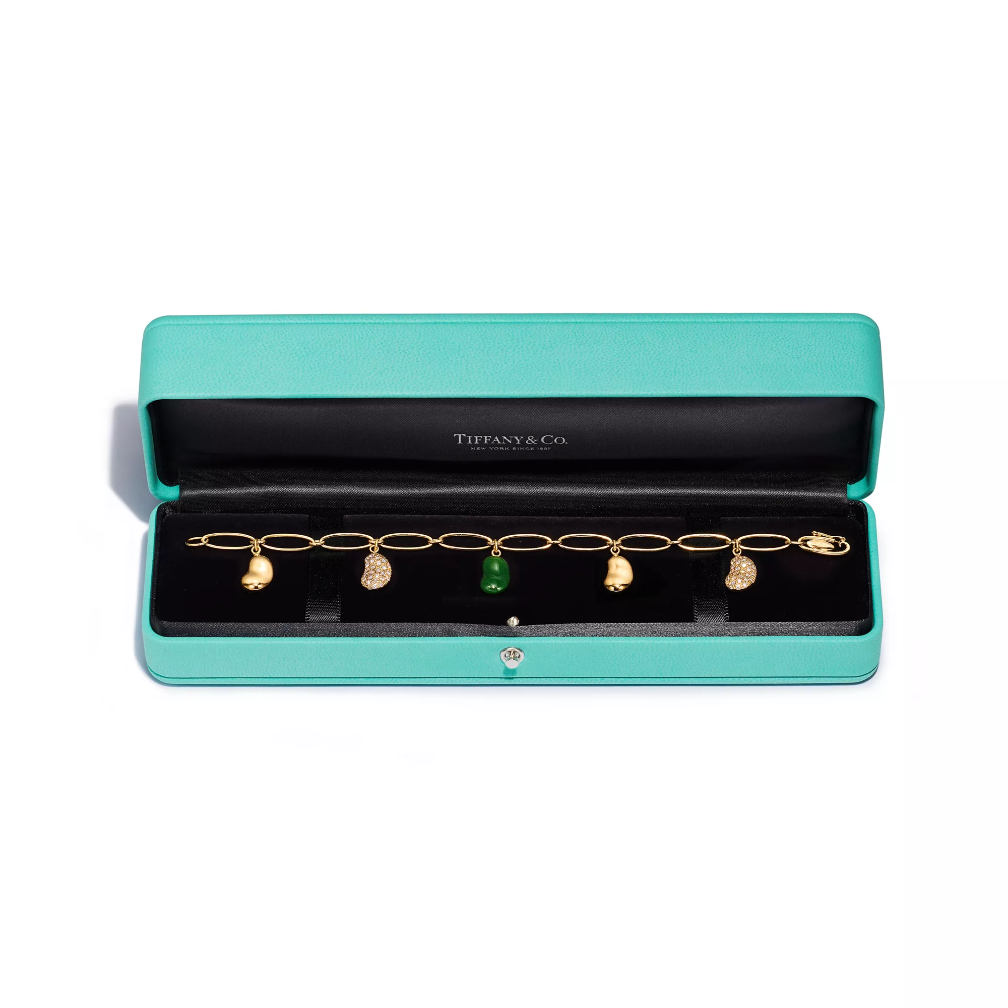 4. Elsa Peretti®:Bean® design Bracelet in Gold with Diamonds & Green Nephrite Jade