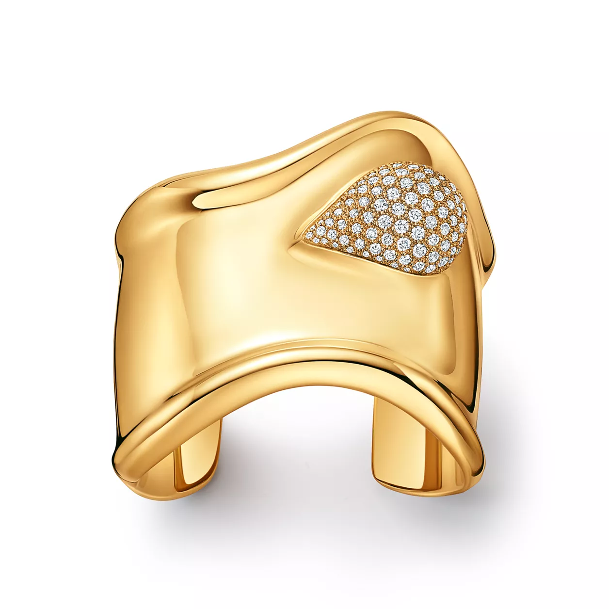 4. Elsa Peretti®:Bone Cuff in Yellow Gold with Pavé Diamonds, 61 mm Wide