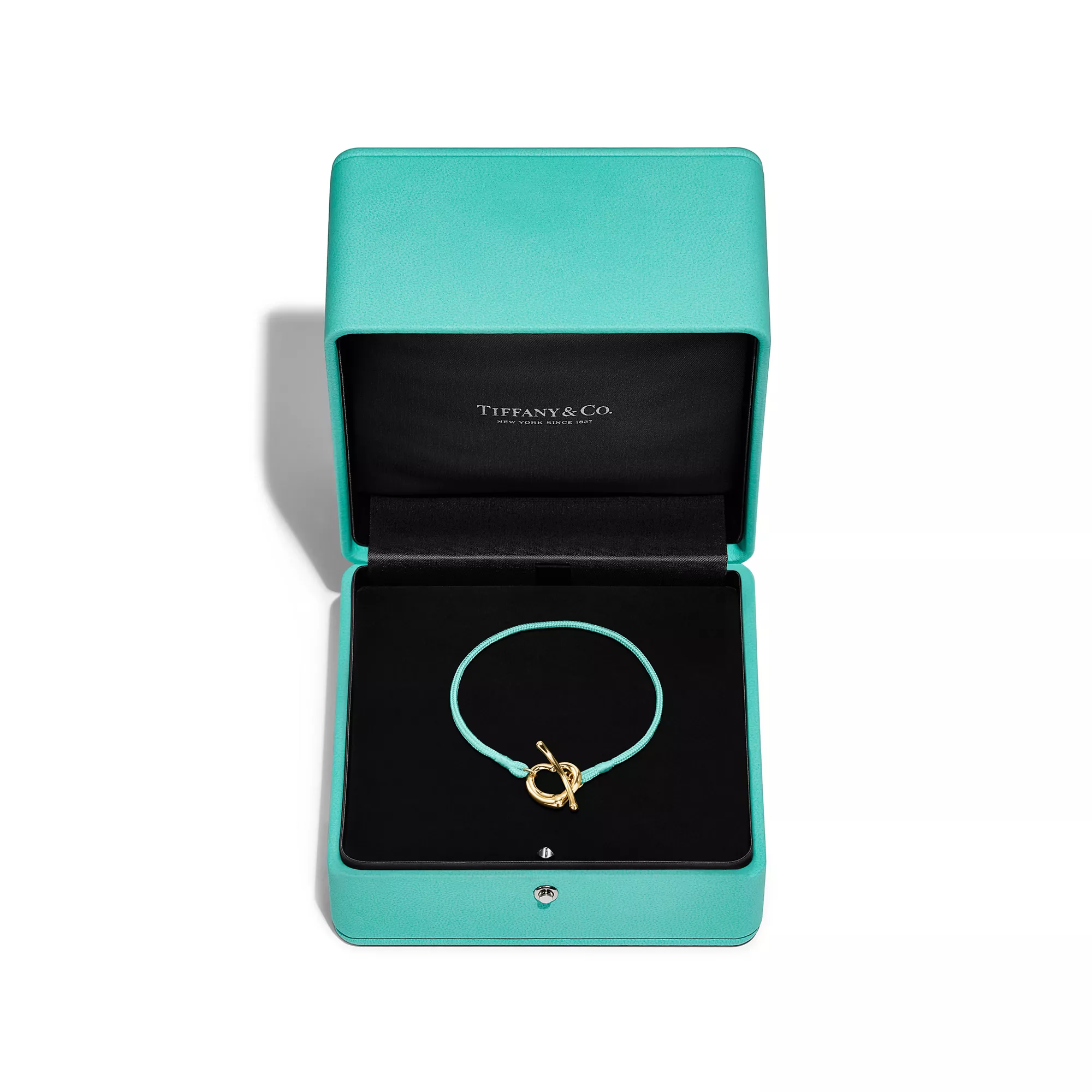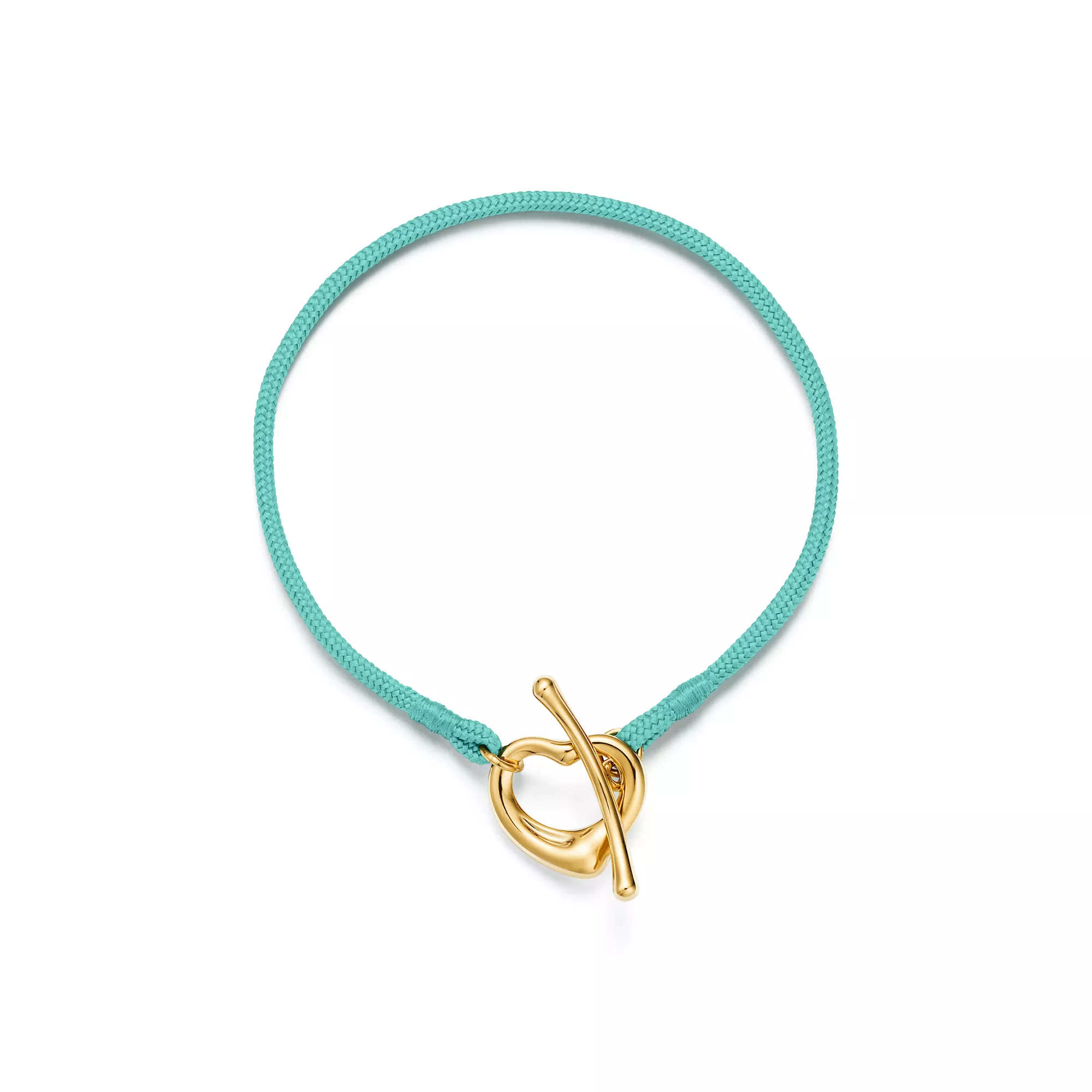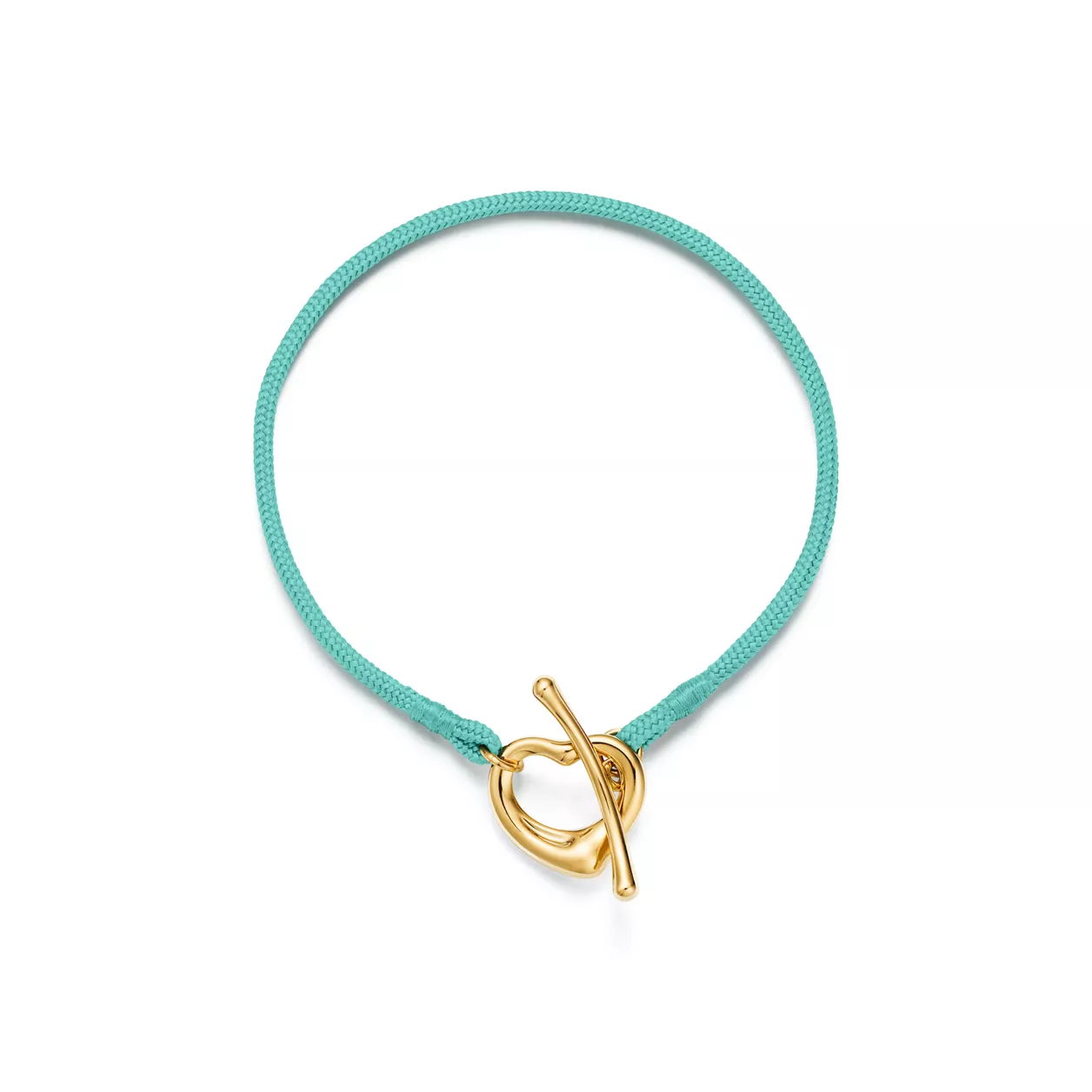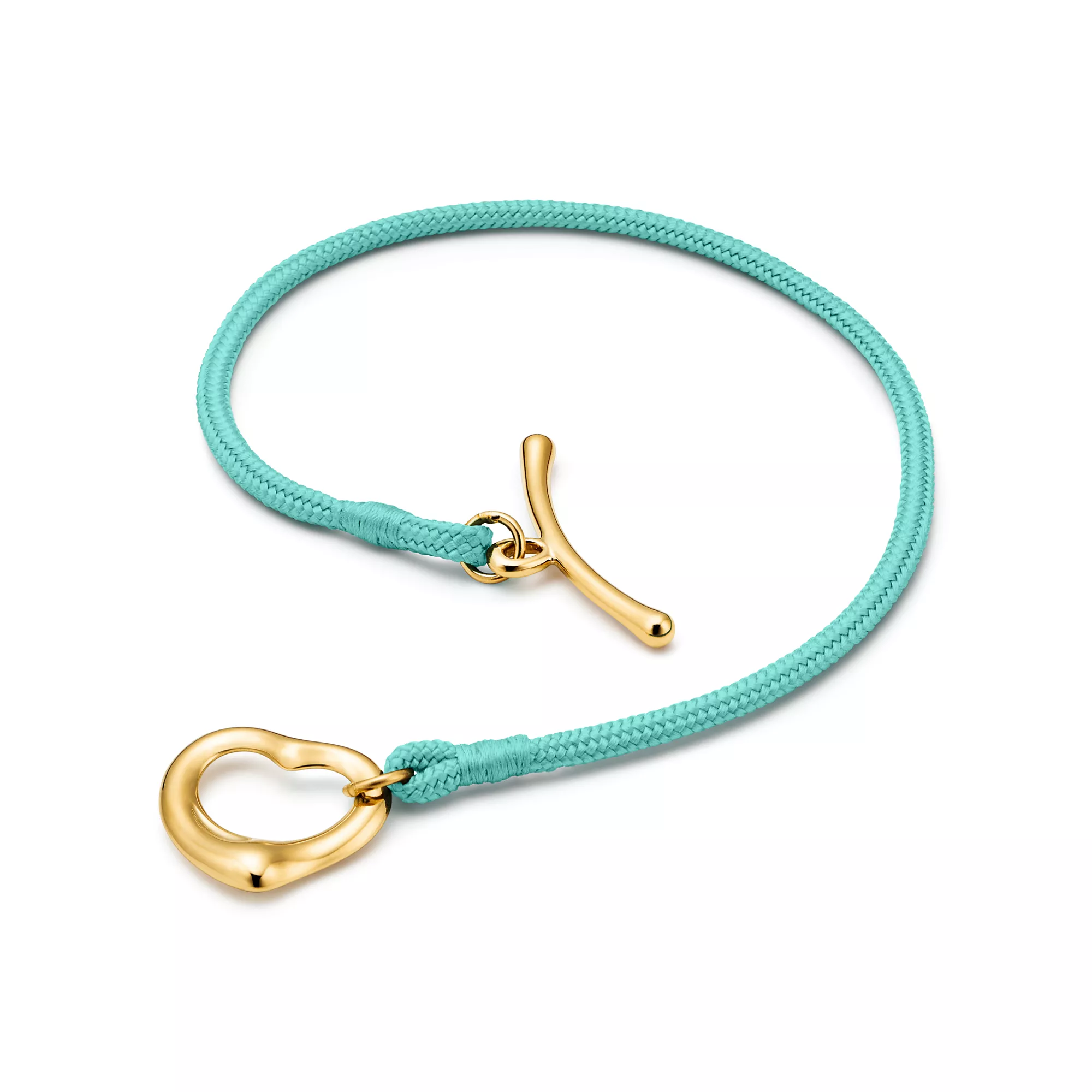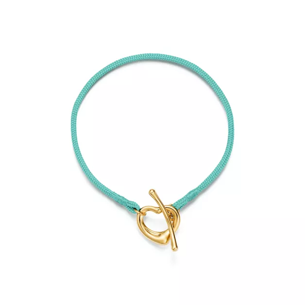 4. Elsa Peretti®:Open Heart Bracelet in Yellow Gold on a Tiffany Blue® Silk Cord