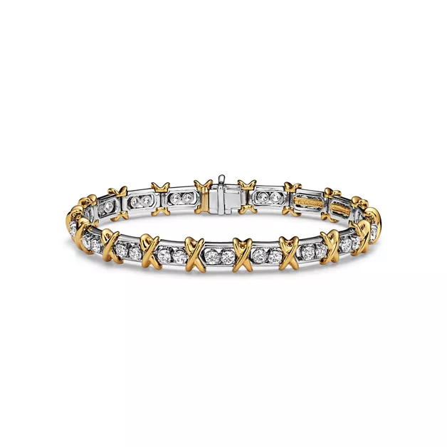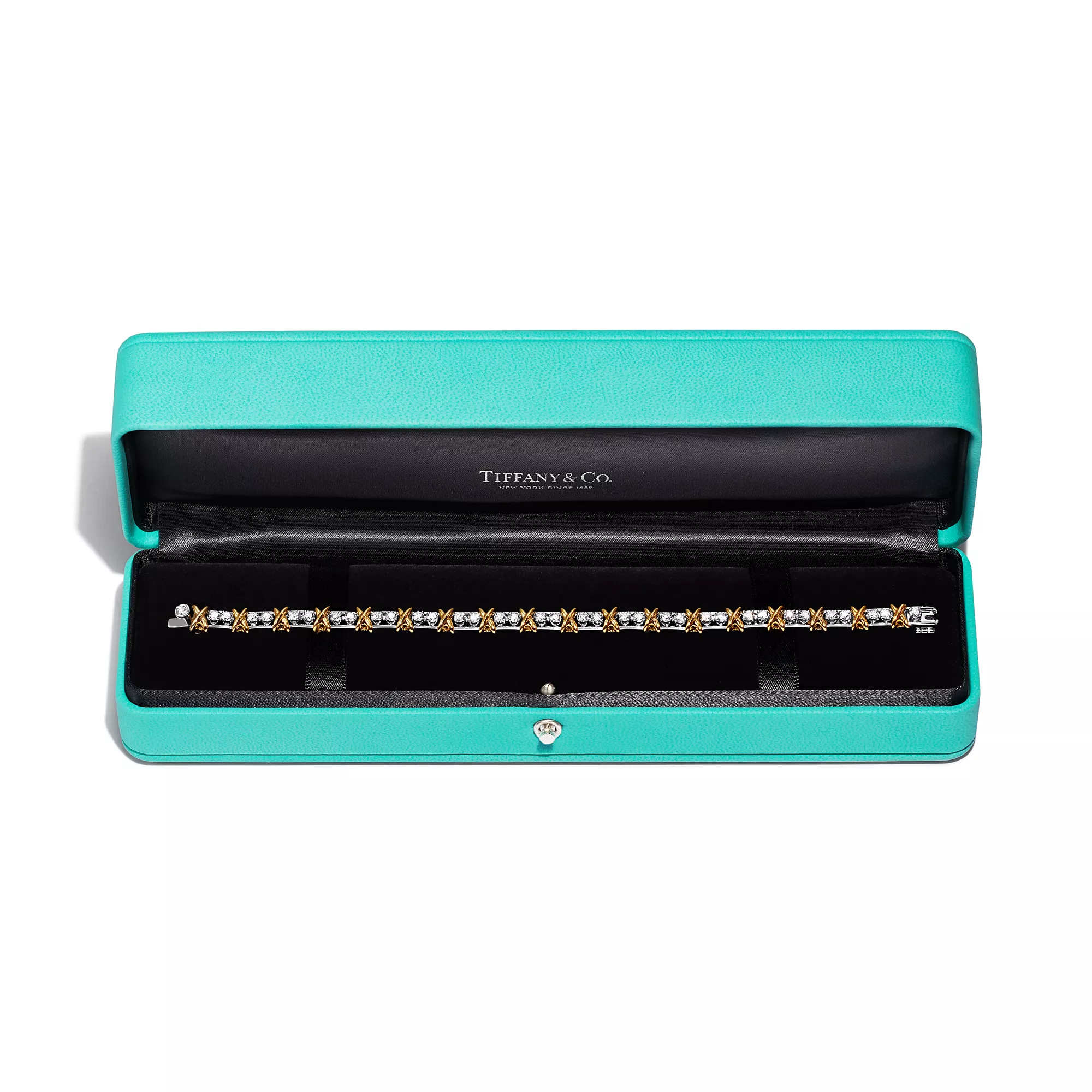 Sixteen Stone by Tiffany jewelry is designed to be both versatile and eye-catching. You can wear a Sixteen Stone by Tiffany ring or bracelet alone to showcase its intricate craftsmanship and luminous diamonds, or layer it with other Tiffany pieces for a more personalized look. The two-tone design pairs beautifully with both 18k yellow gold and platinum jewelry and can complement any wardrobe.