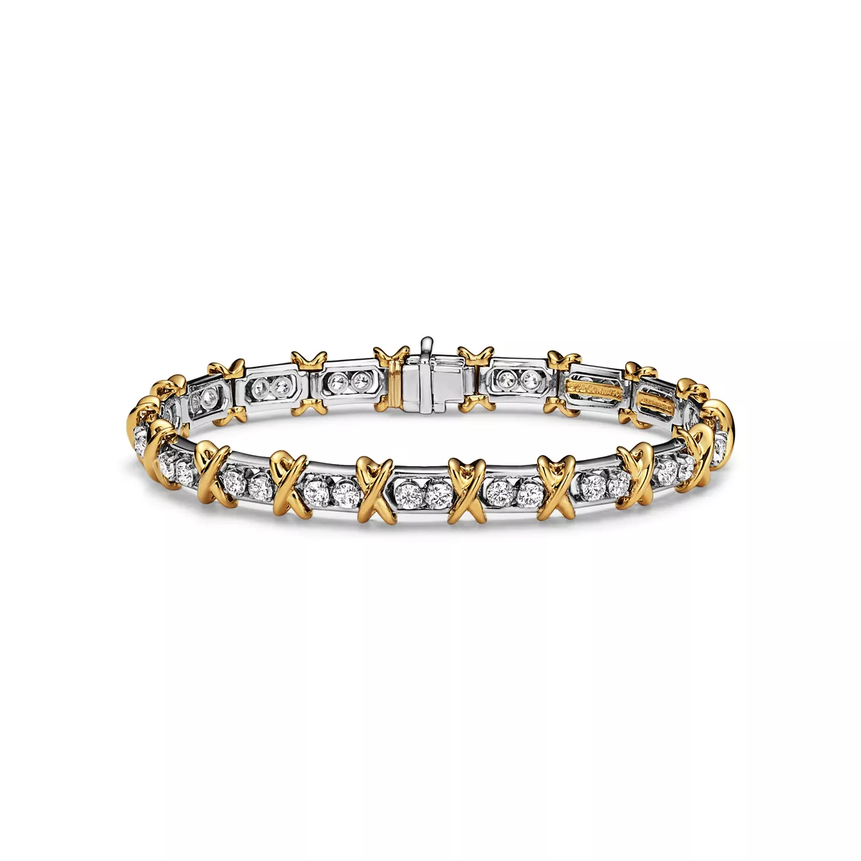 Sixteen Stone by Tiffany pieces are exceptional for their artistry and heritage. Each design showcases a continuous circle of meticulously set of gemstones framed by Jean Schlumberger’s iconic X motif, symbolizing love’s nurturing forces.