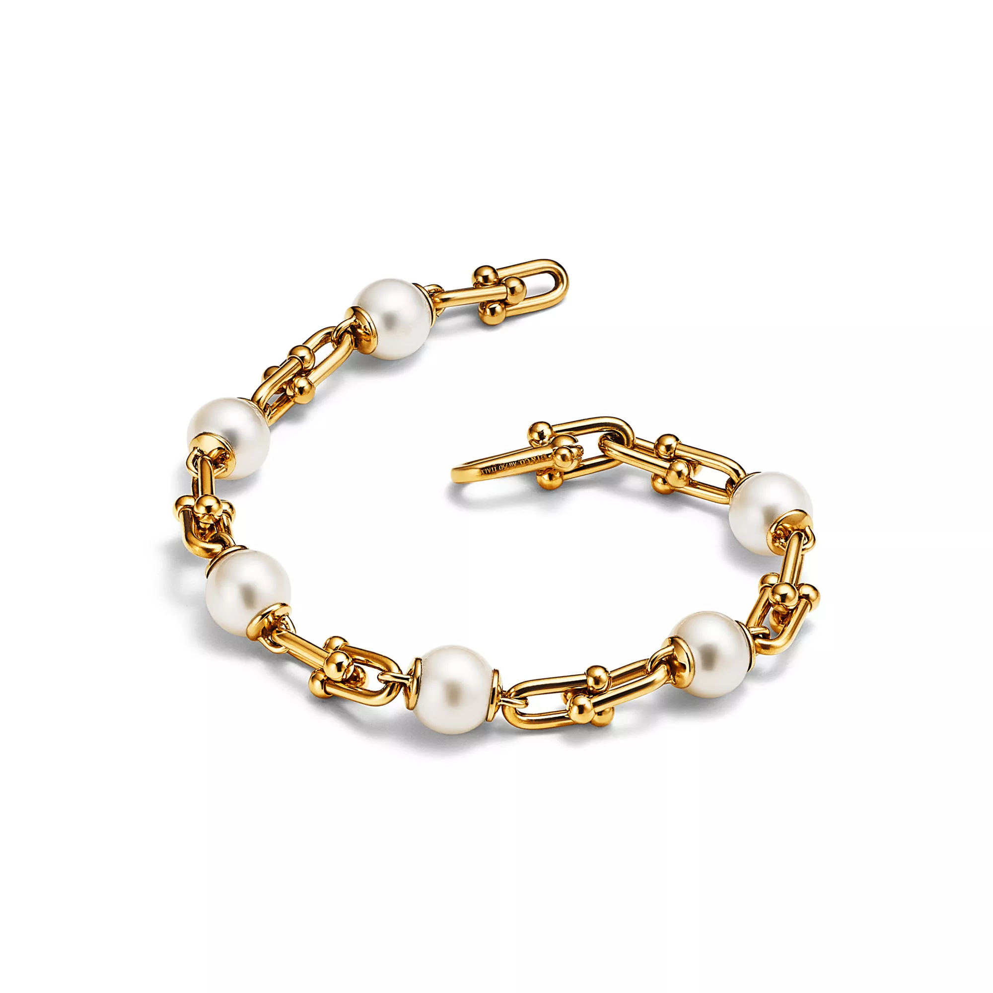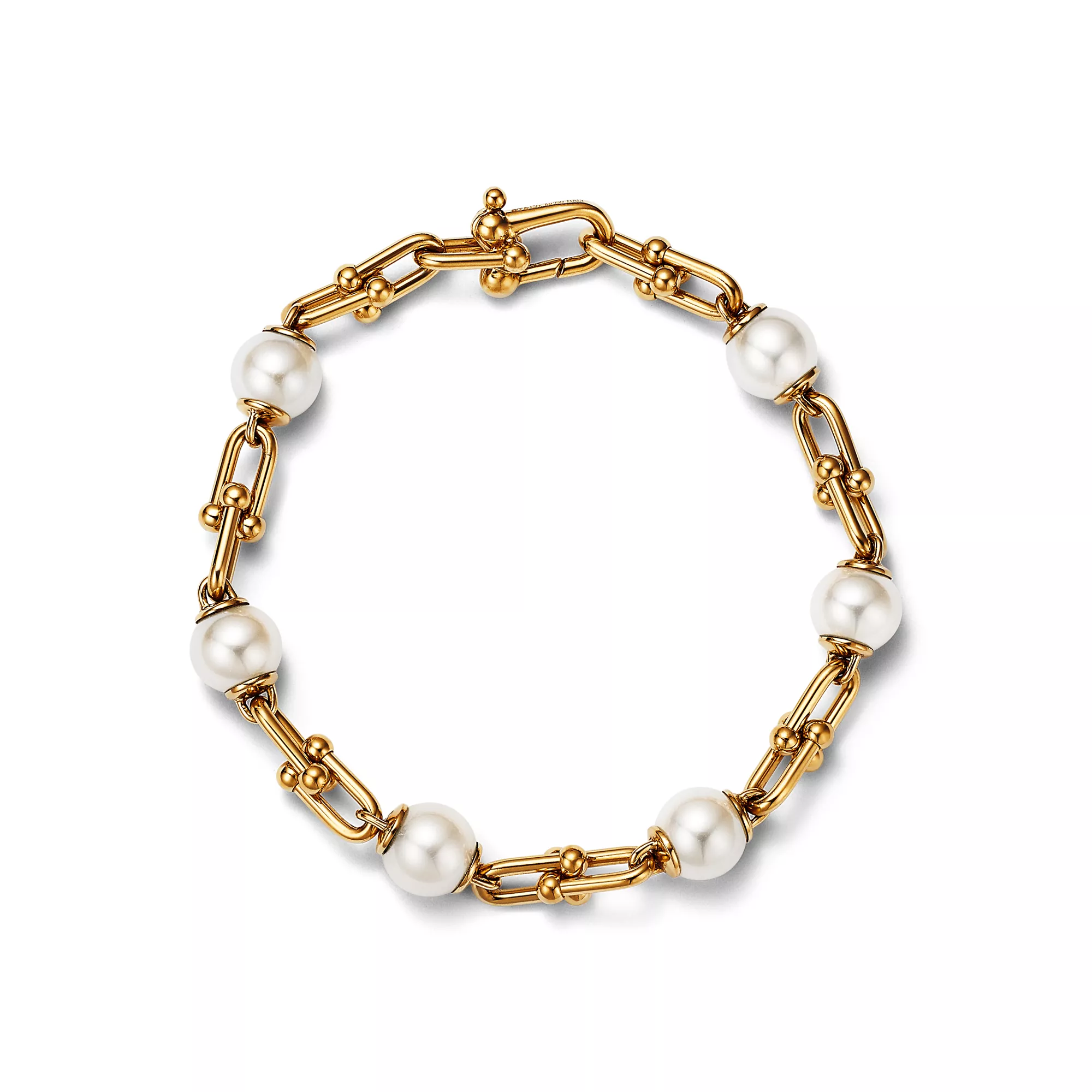 4. Tiffany HardWear:Link Bracelet in Yellow Gold with Freshwater Pearls