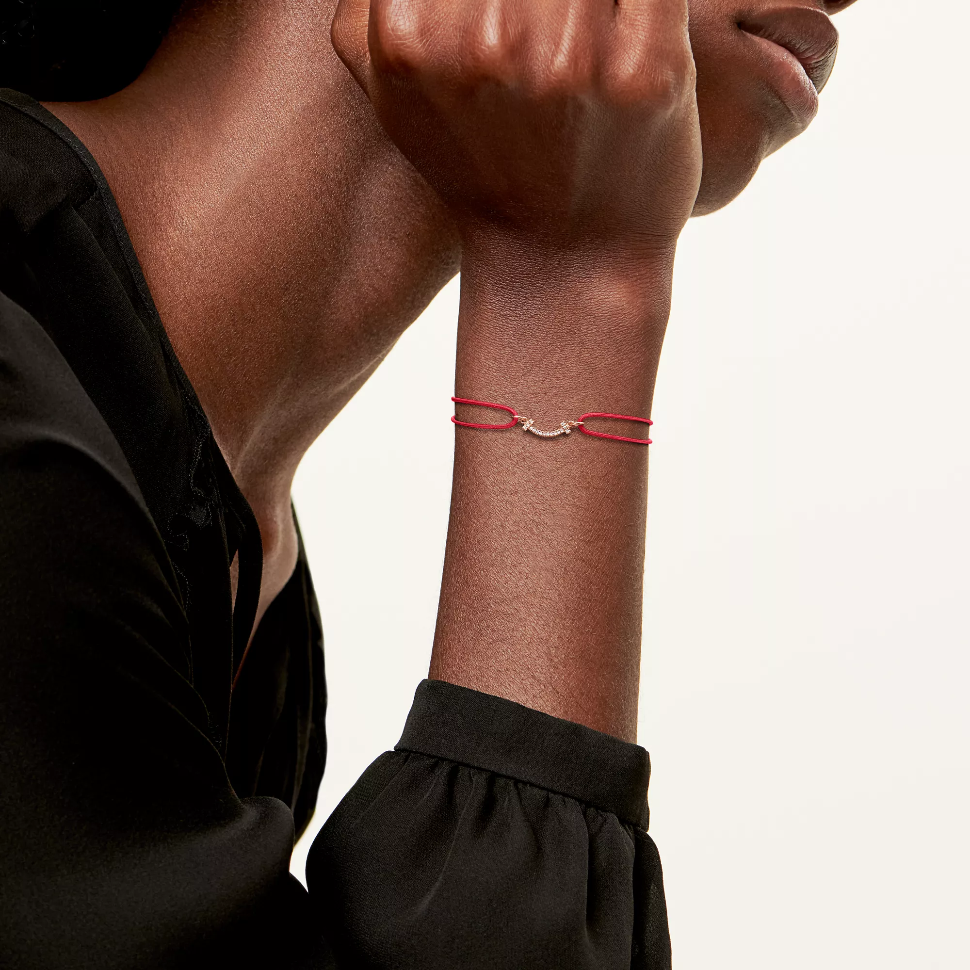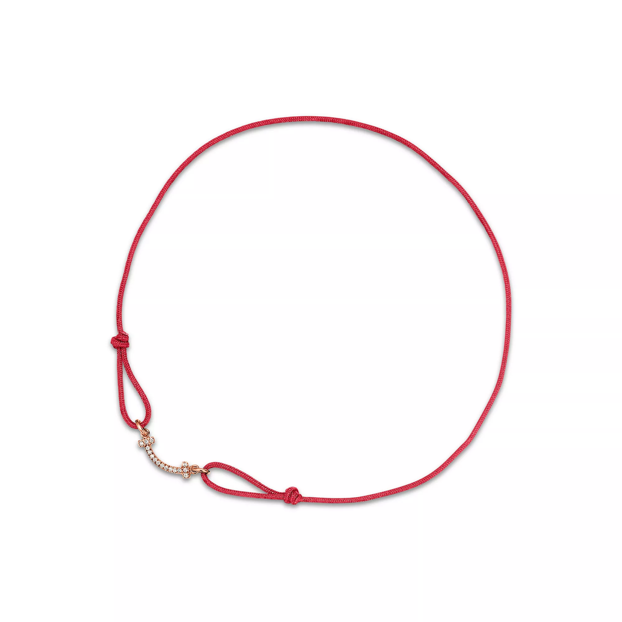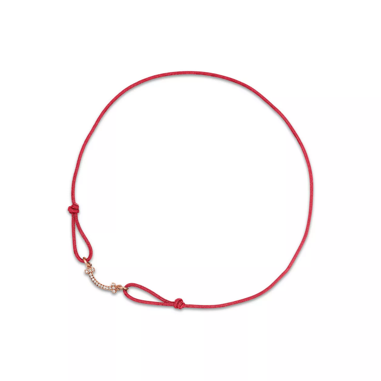 4. Tiffany T:Smile Bracelet in Rose Gold on a Red Cord with Diamonds