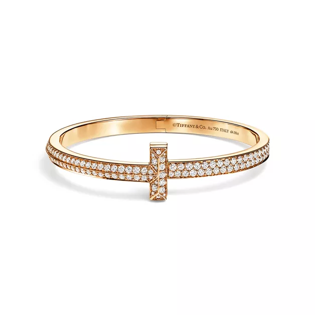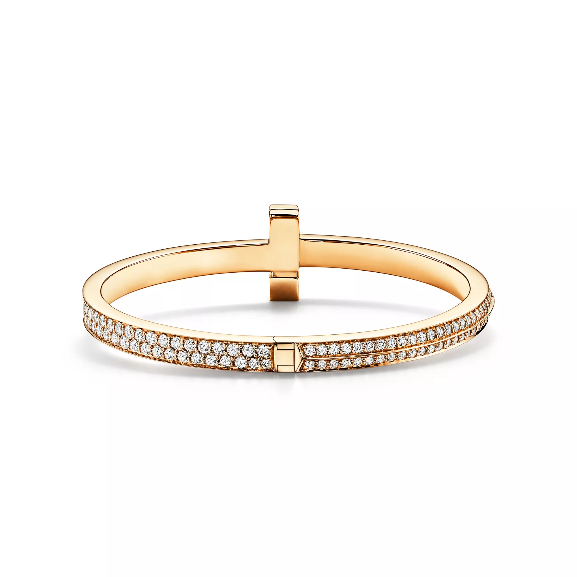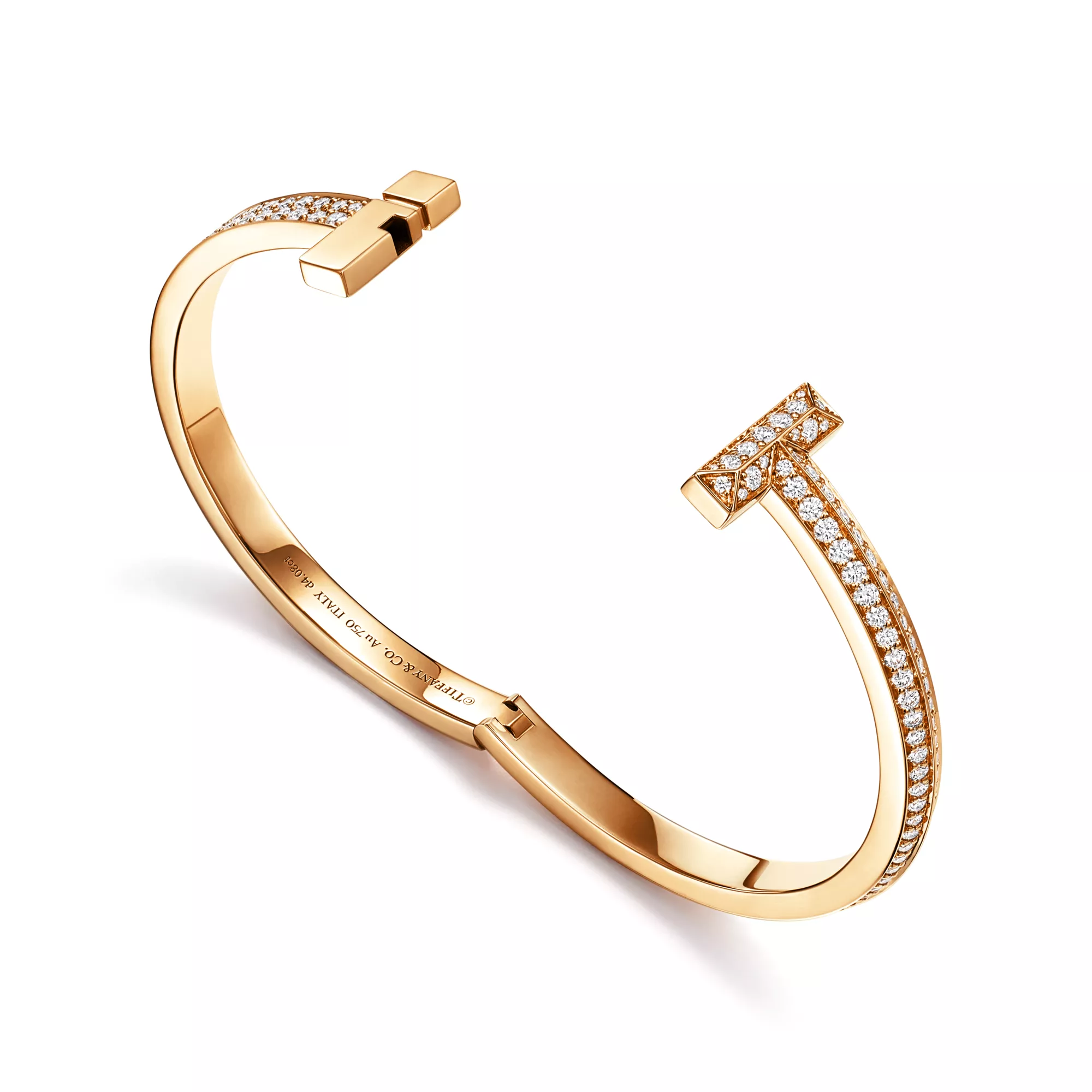 4. Tiffany T:T1 Wide Diamond Hinged Bangle in Yellow Gold