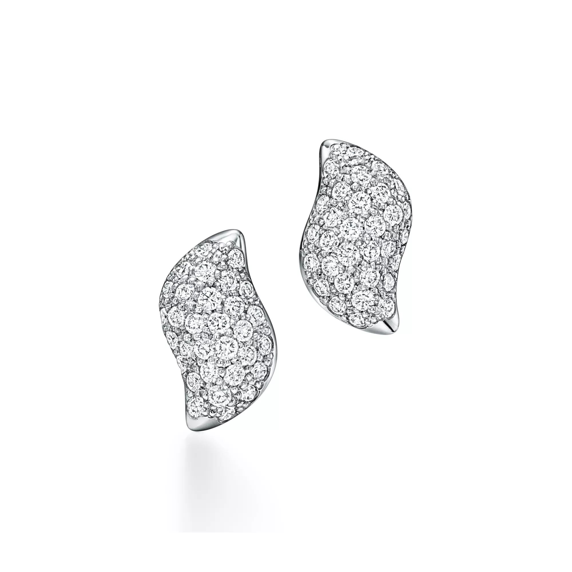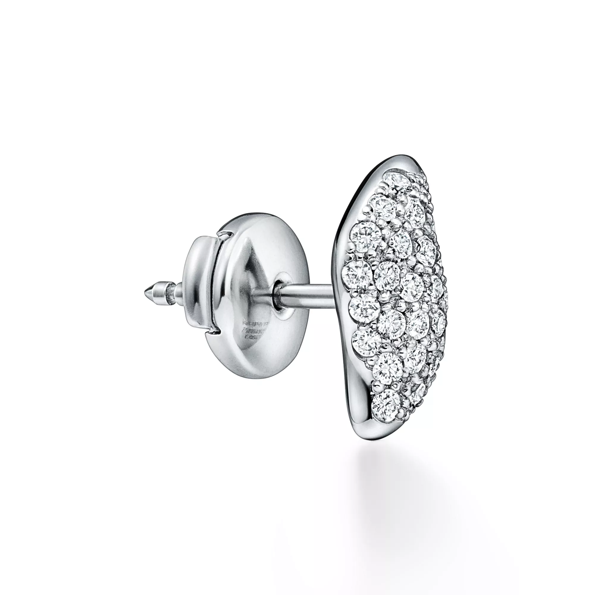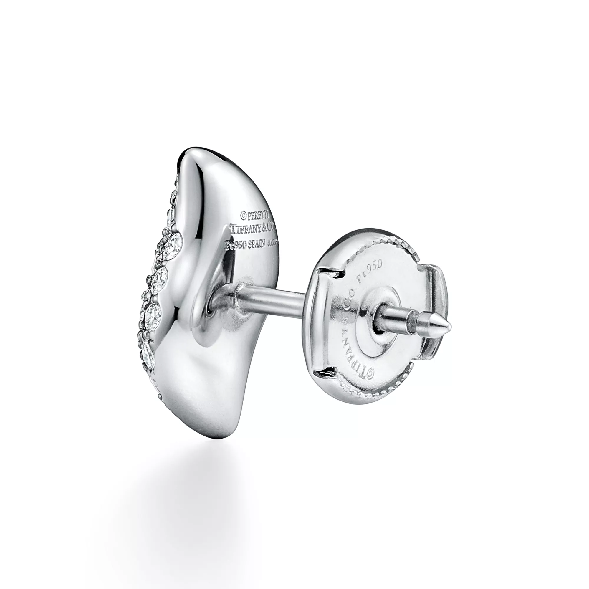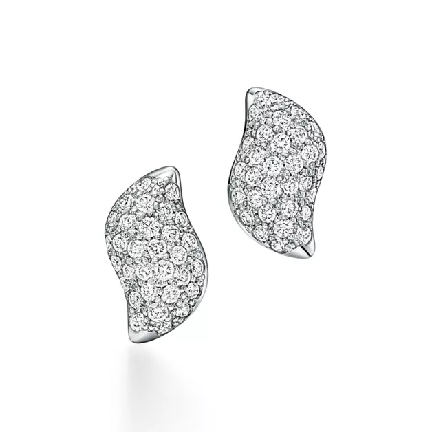 4. Elsa Peretti®:Mini Stud Feather Earrings in Platinum with Pavé Diamonds