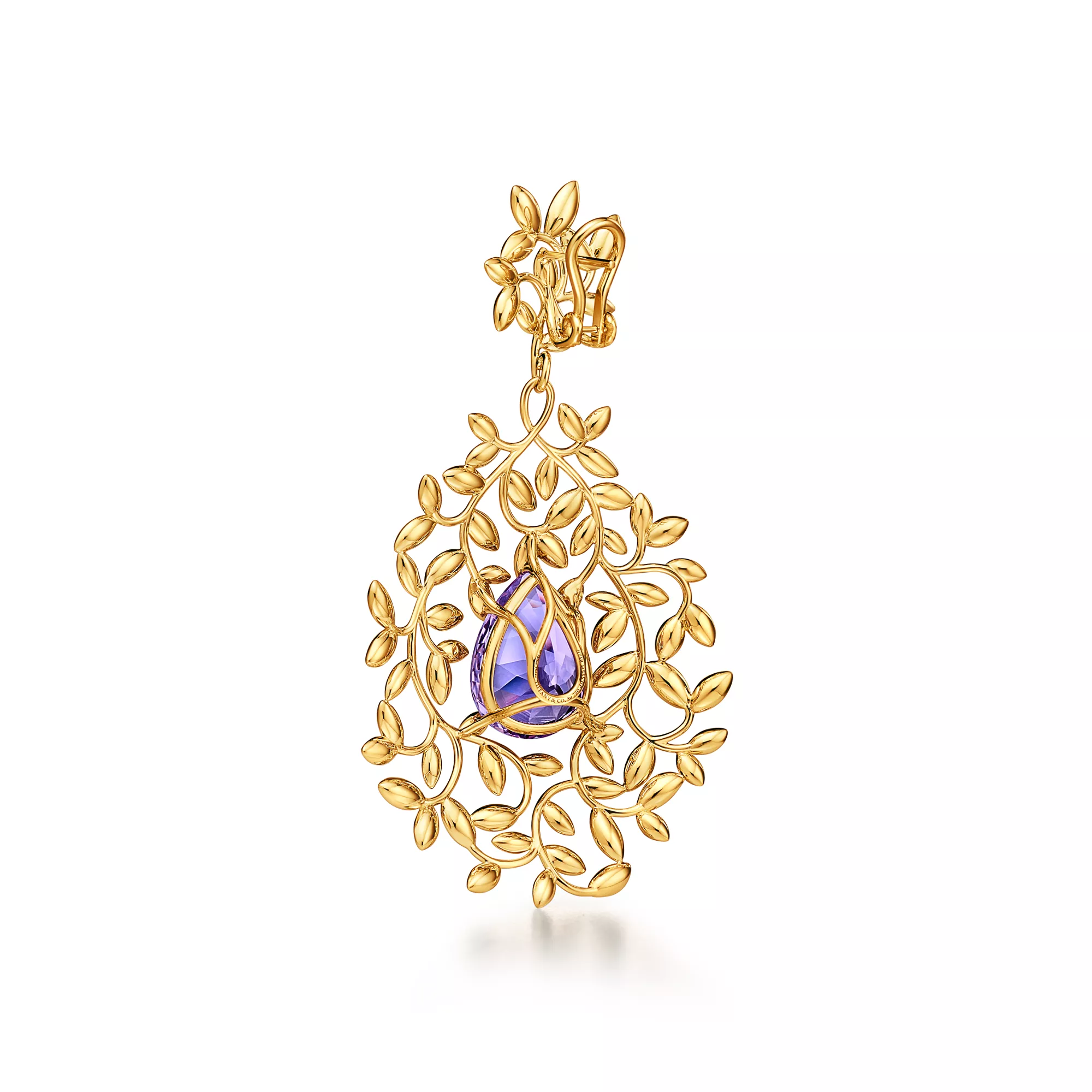 4. Paloma Picasso®:Olive Leaf Amethyst Earrings in Yellow Gold with Diamonds