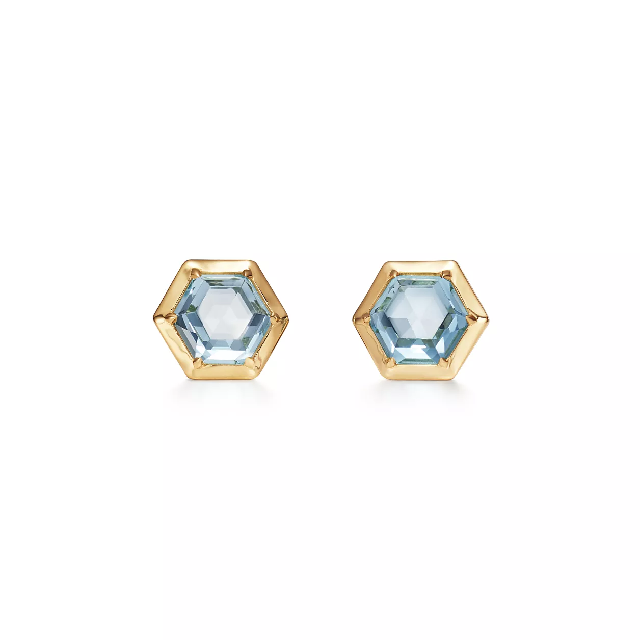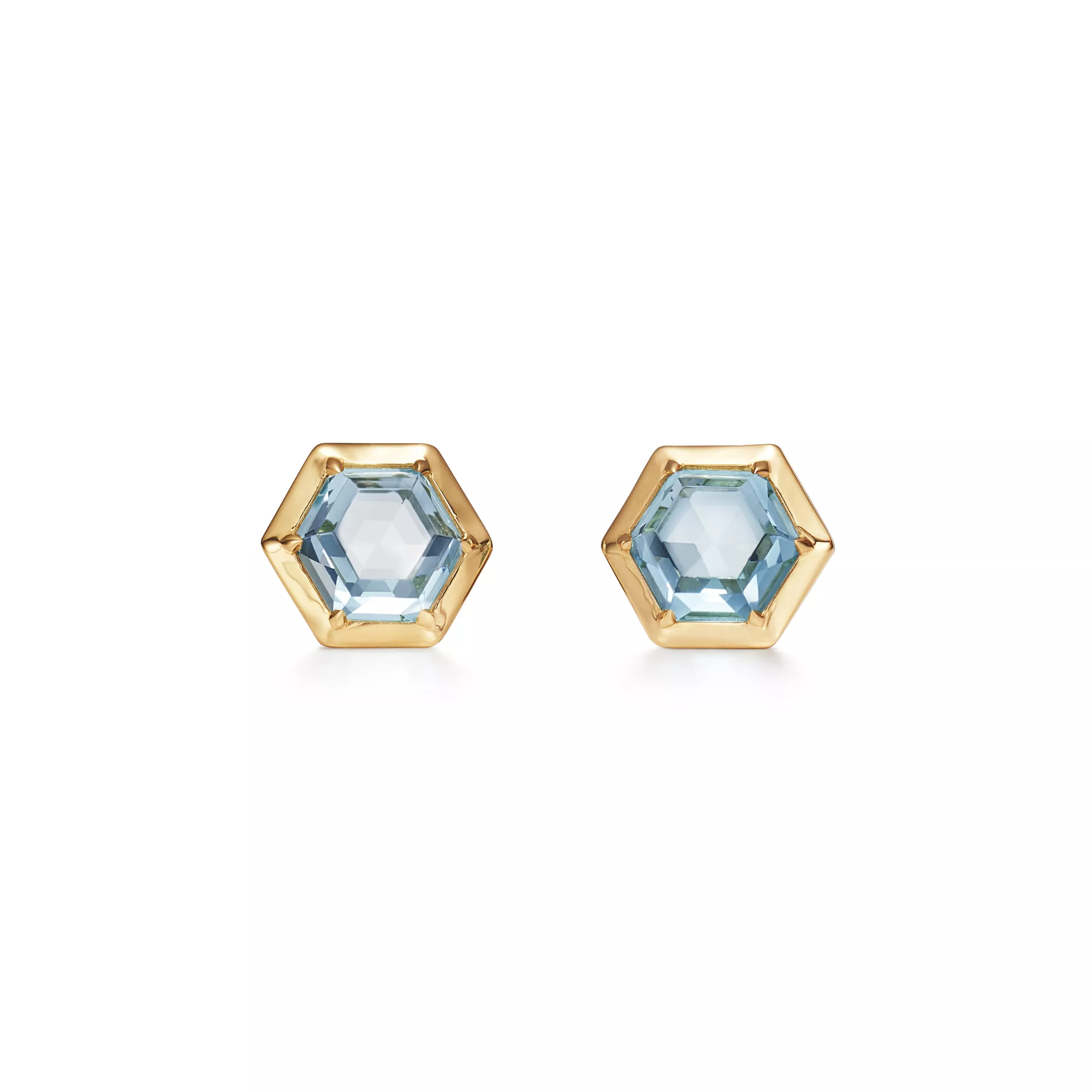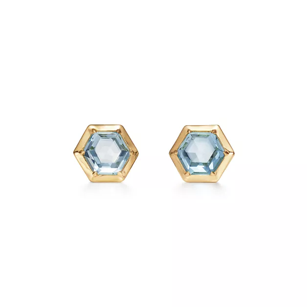 4. Paloma's Studio:Hexagon Earrings in 18k Gold with Blue Topazes