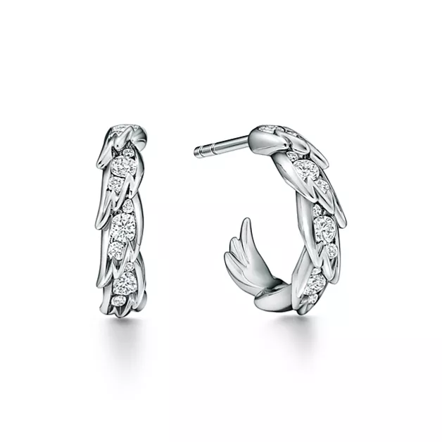 4. Bird on a Rock by Tiffany:Wings Hoop Earrings in Platinum with Diamonds