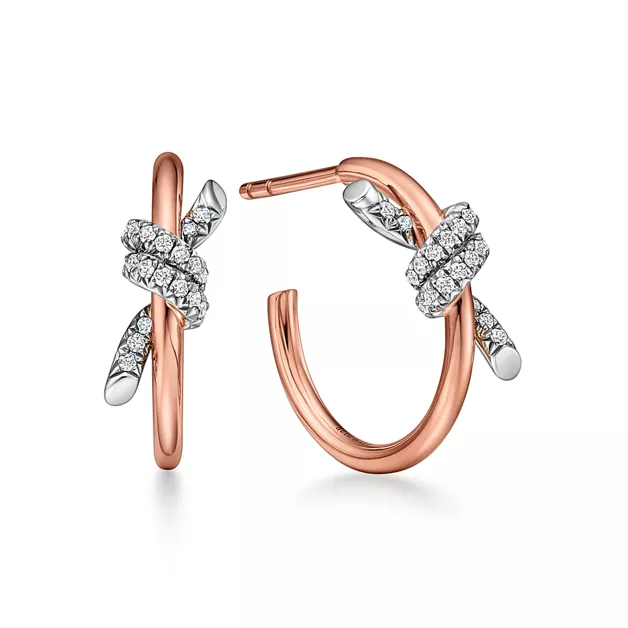 4. Tiffany Knot:Hoop Earrings in Rose Gold and Platinum with Diamonds