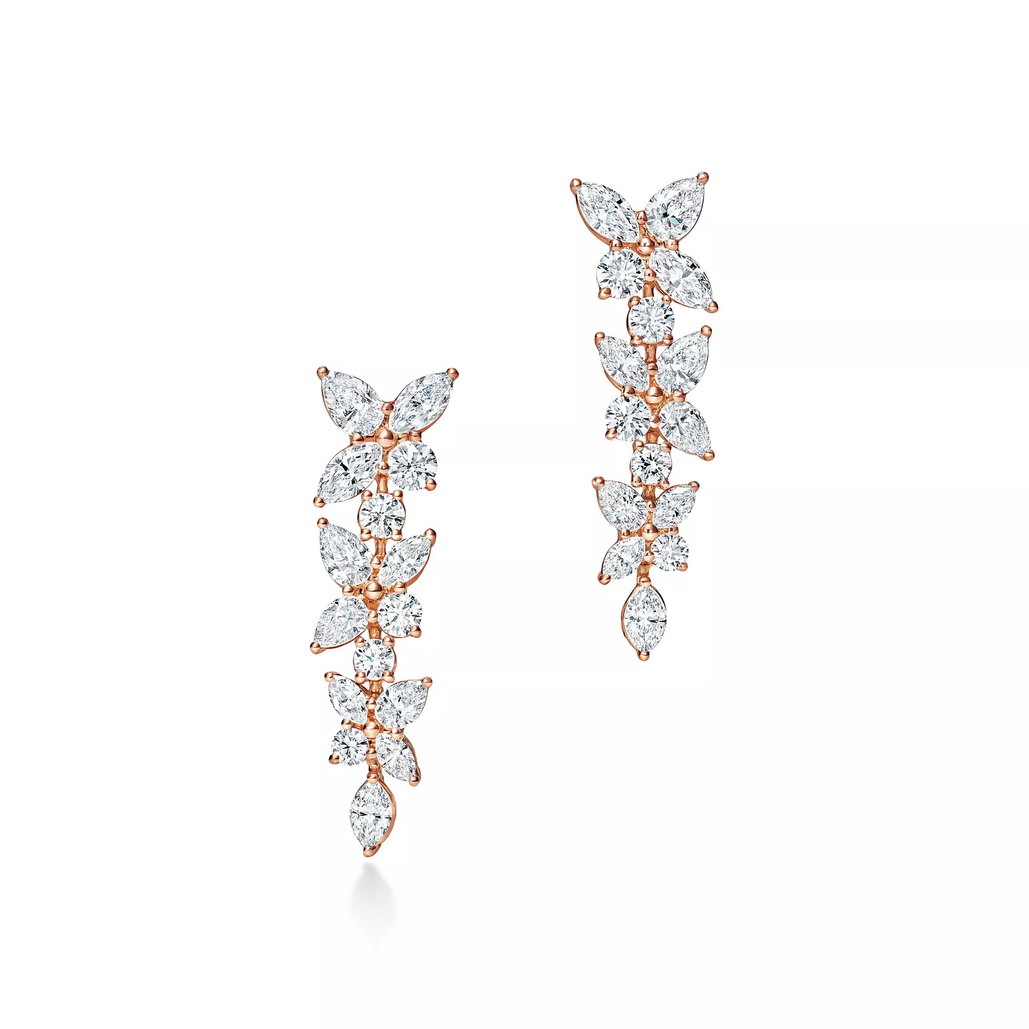 4. Tiffany Victoria®:Mixed Cluster Diamond Drop Earrings in 18k Rose Gold