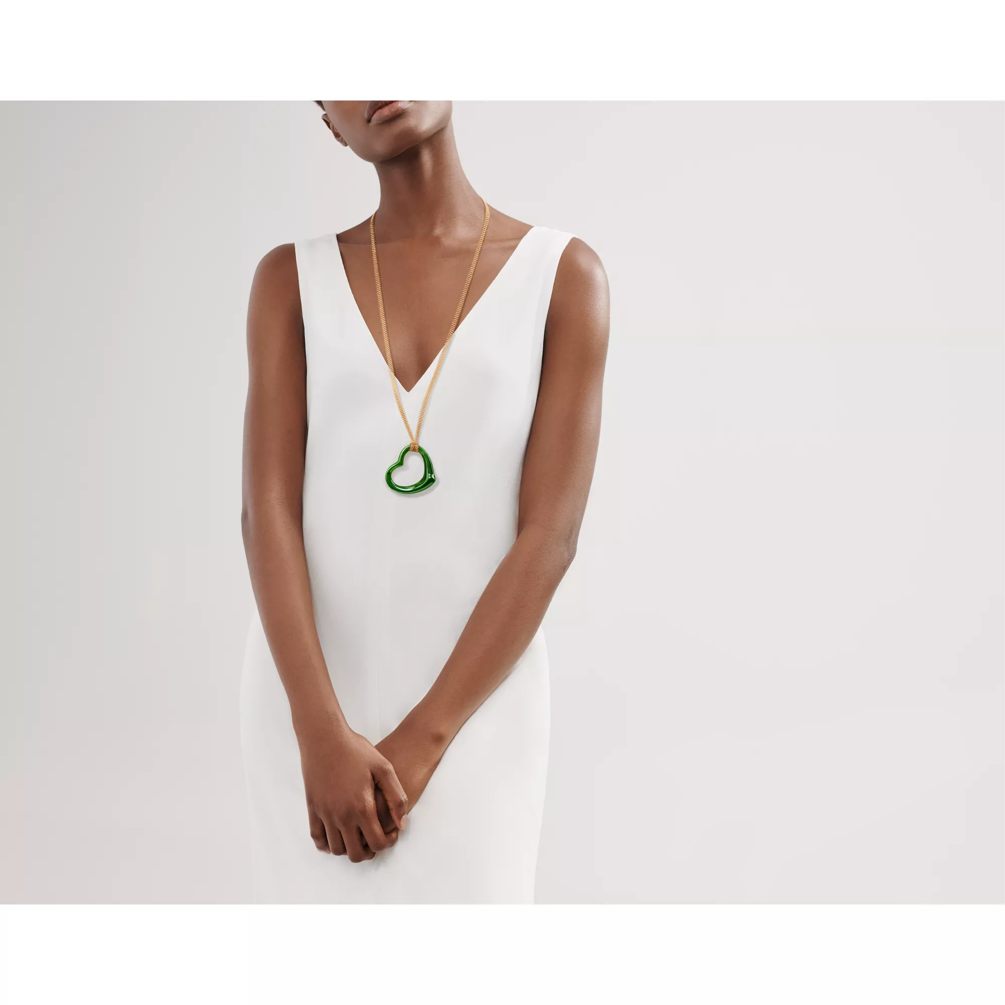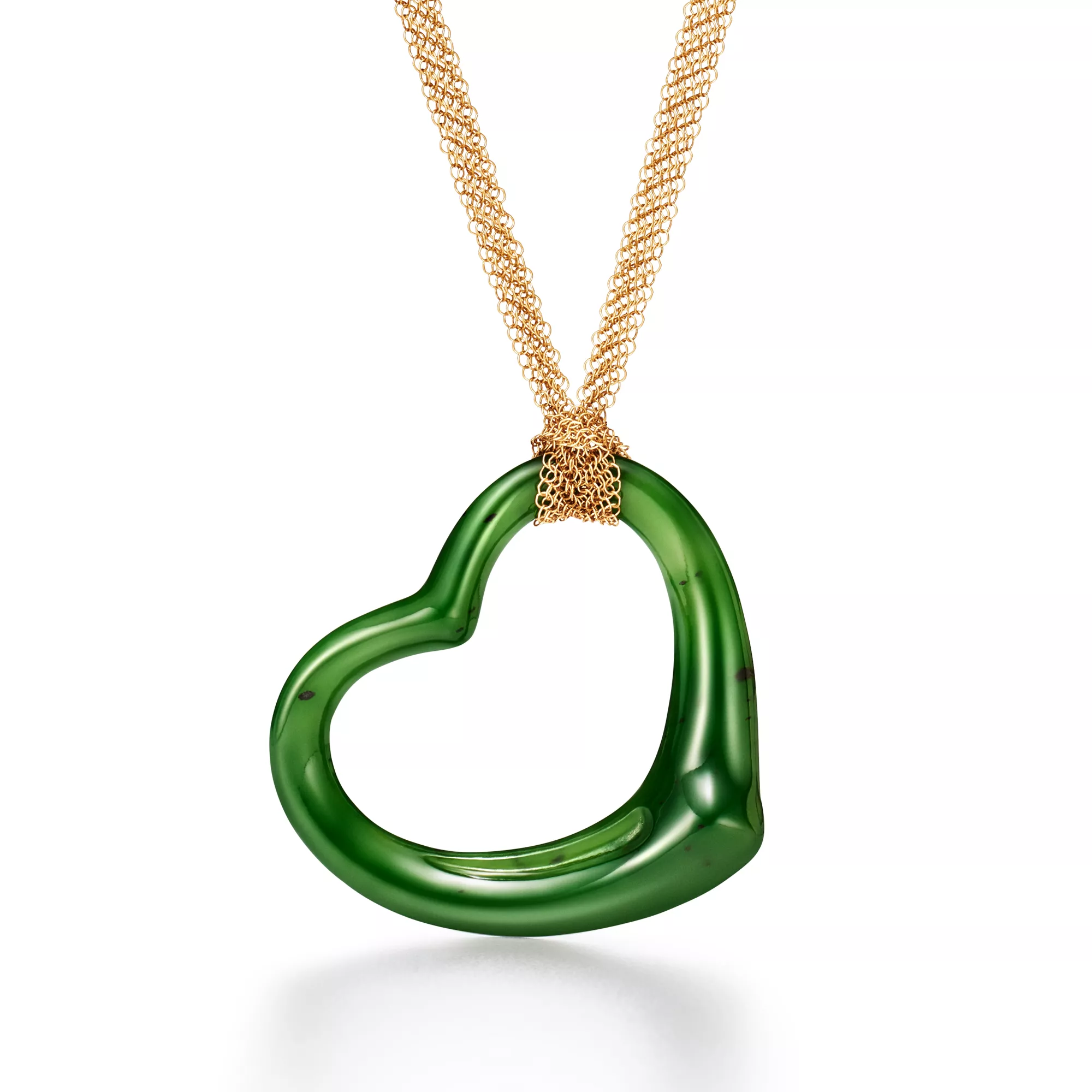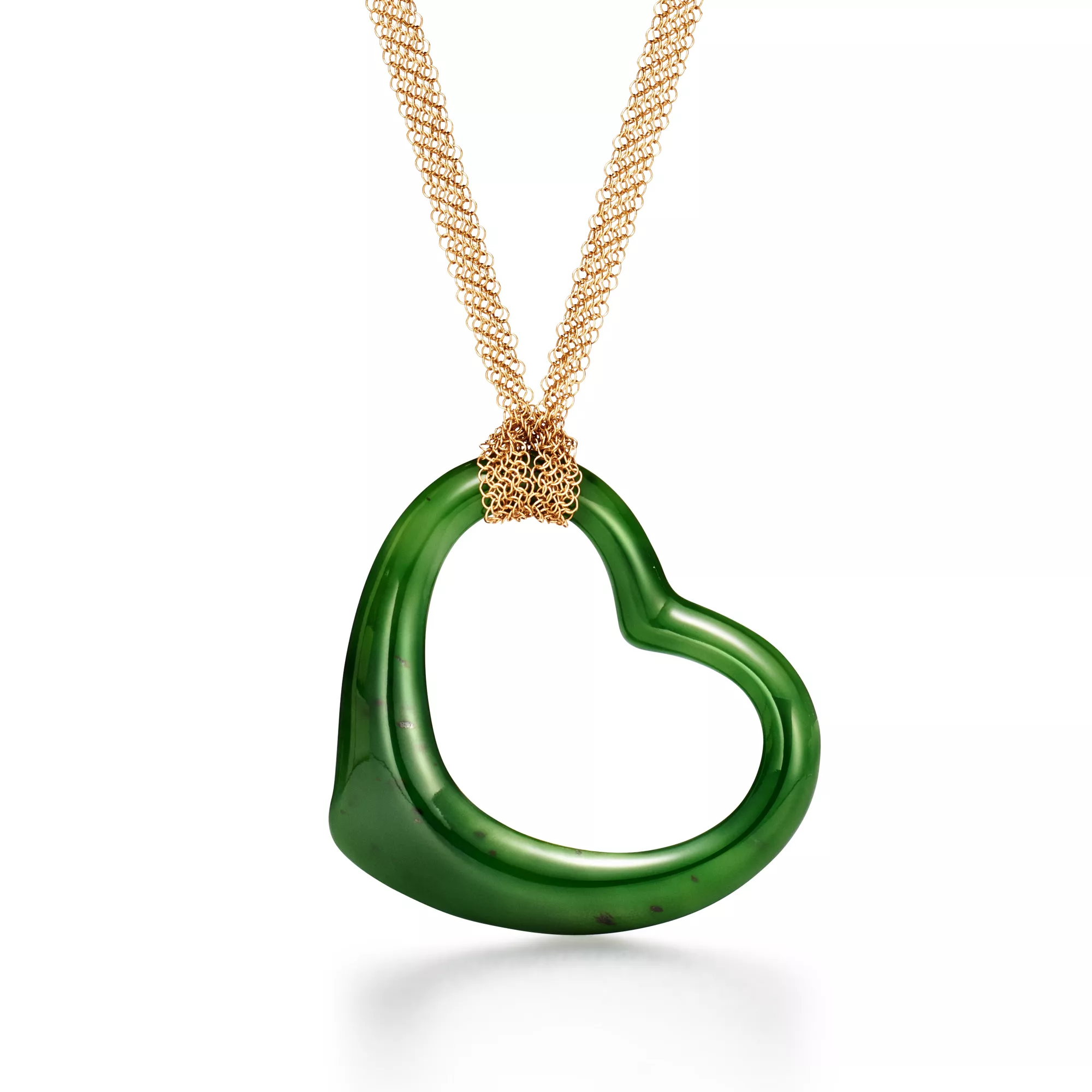 4. Elsa Peretti®:Open Heart Pendant in Yellow Gold with Green Nephrite Jade