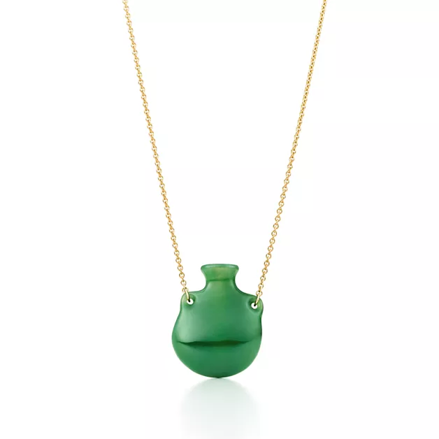 18k yellow gold with green nephrite jade29 x 23 mmOn a 28" chainOriginal designs copyrighted by the Nando and Elsa Peretti Foundation -