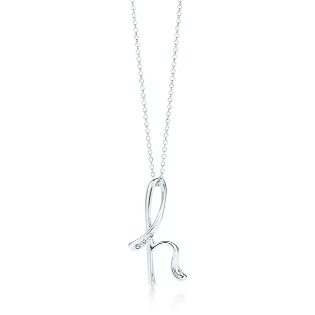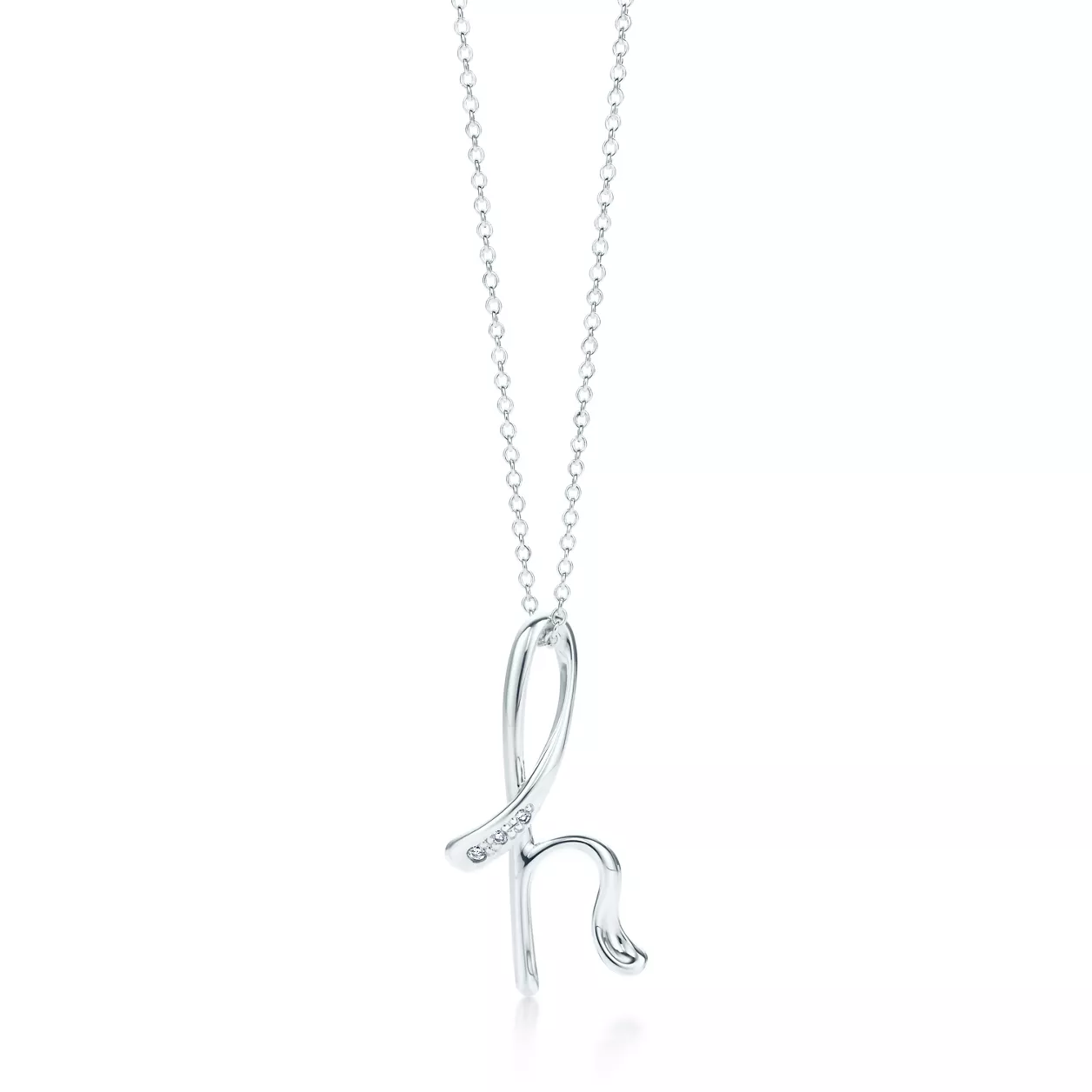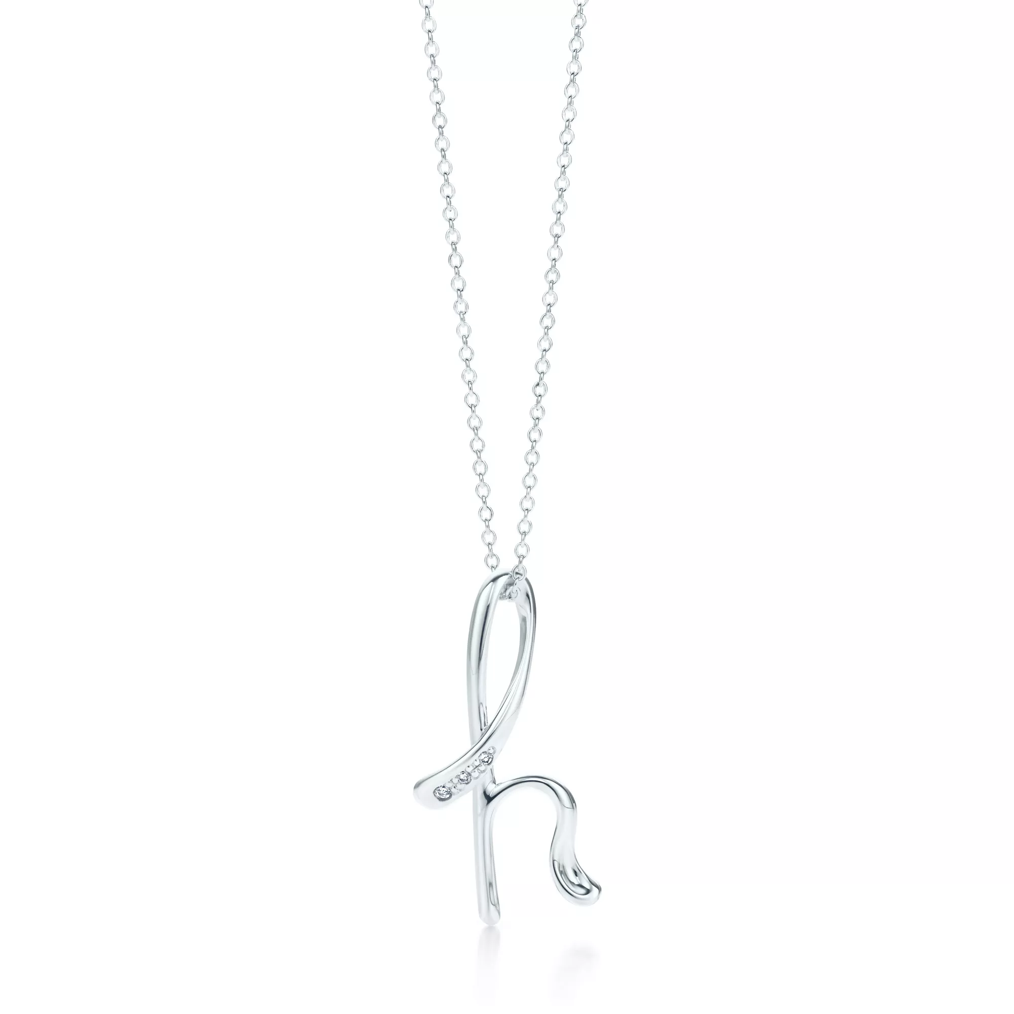 - Elsa Peretti™:Small Alphabet Pendant in Sterling Silver with Diamonds