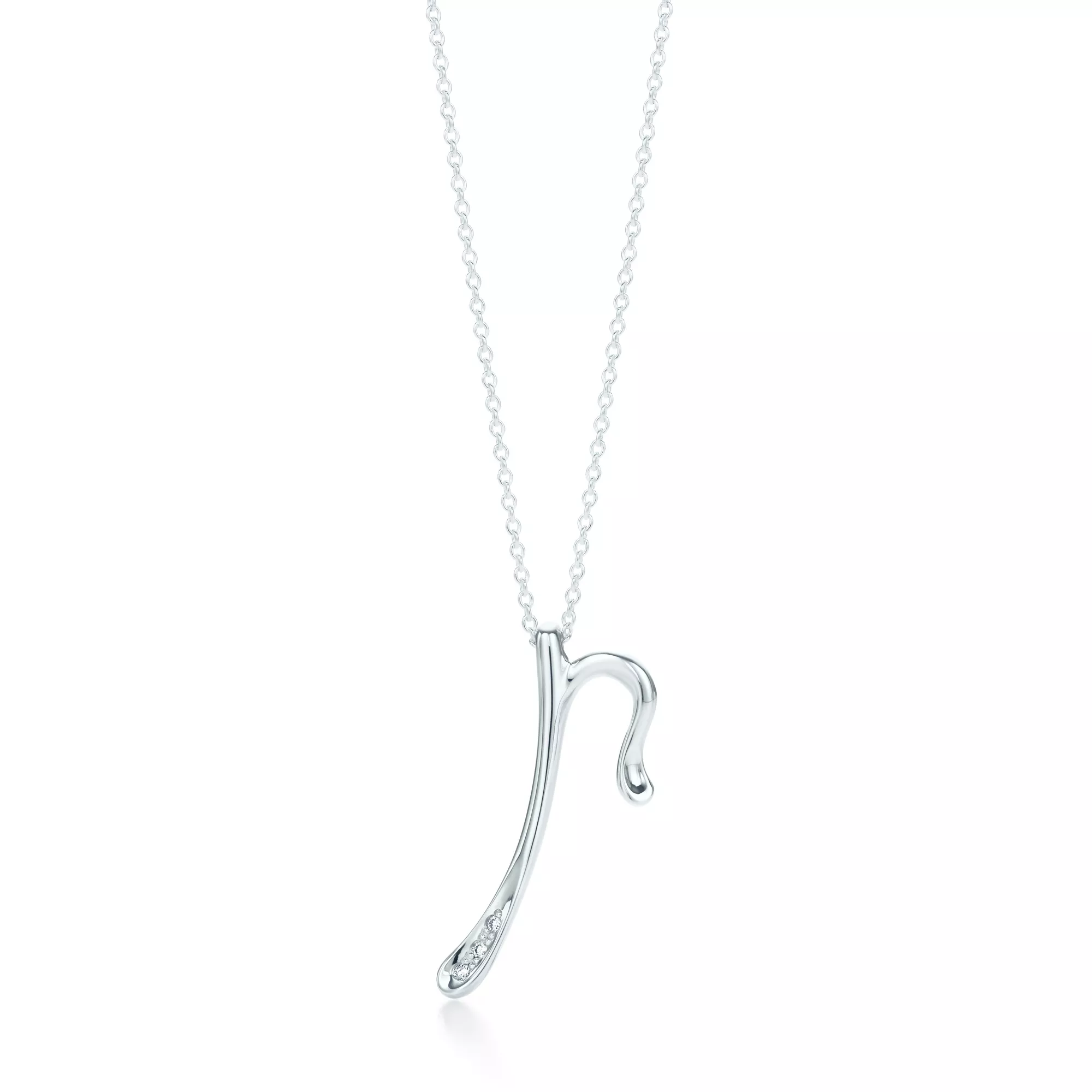 - Elsa Peretti™:Small Alphabet Pendant in Sterling Silver with Diamonds