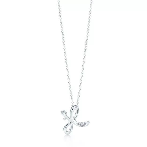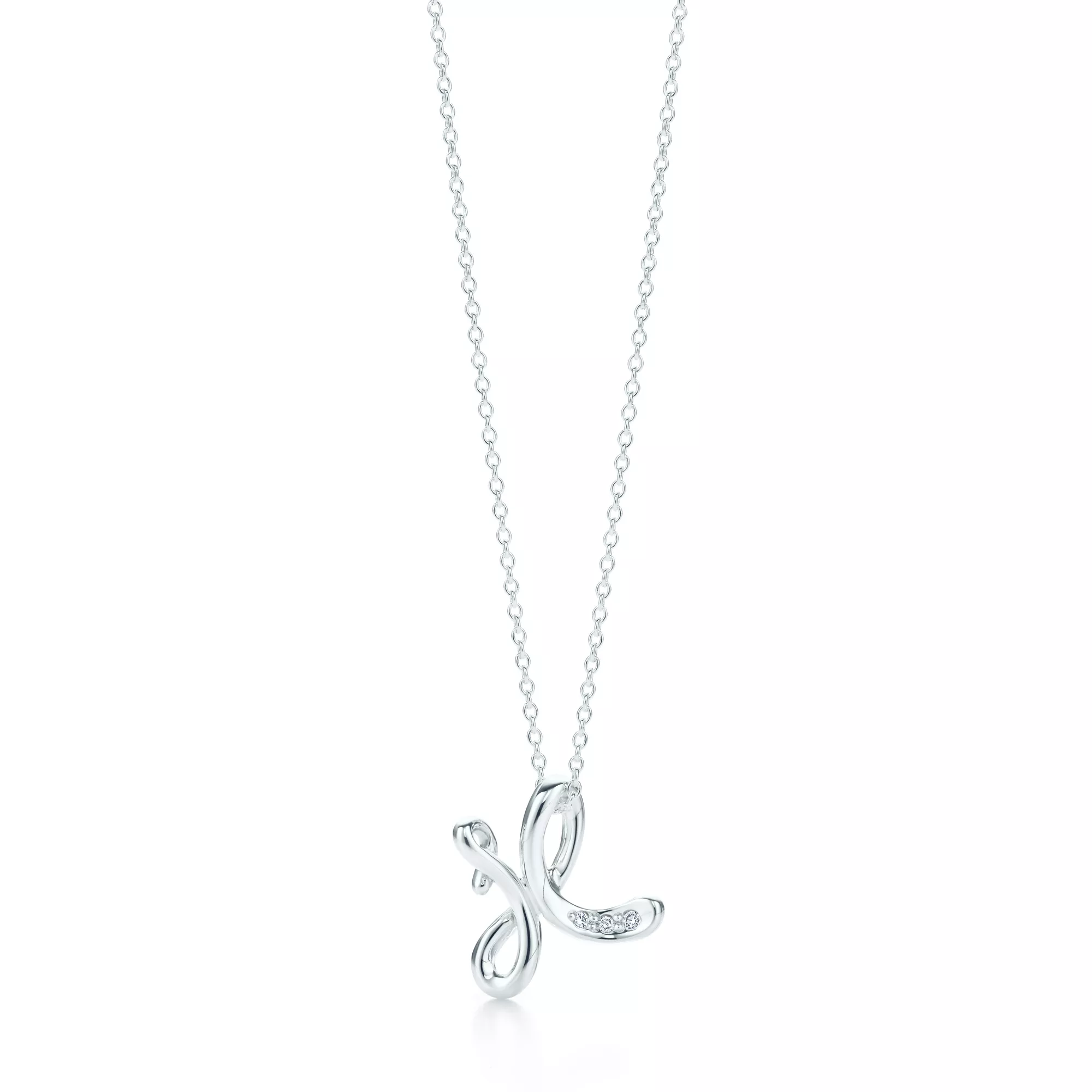 - Elsa Peretti™:Small Alphabet Pendant in Sterling Silver with Diamonds