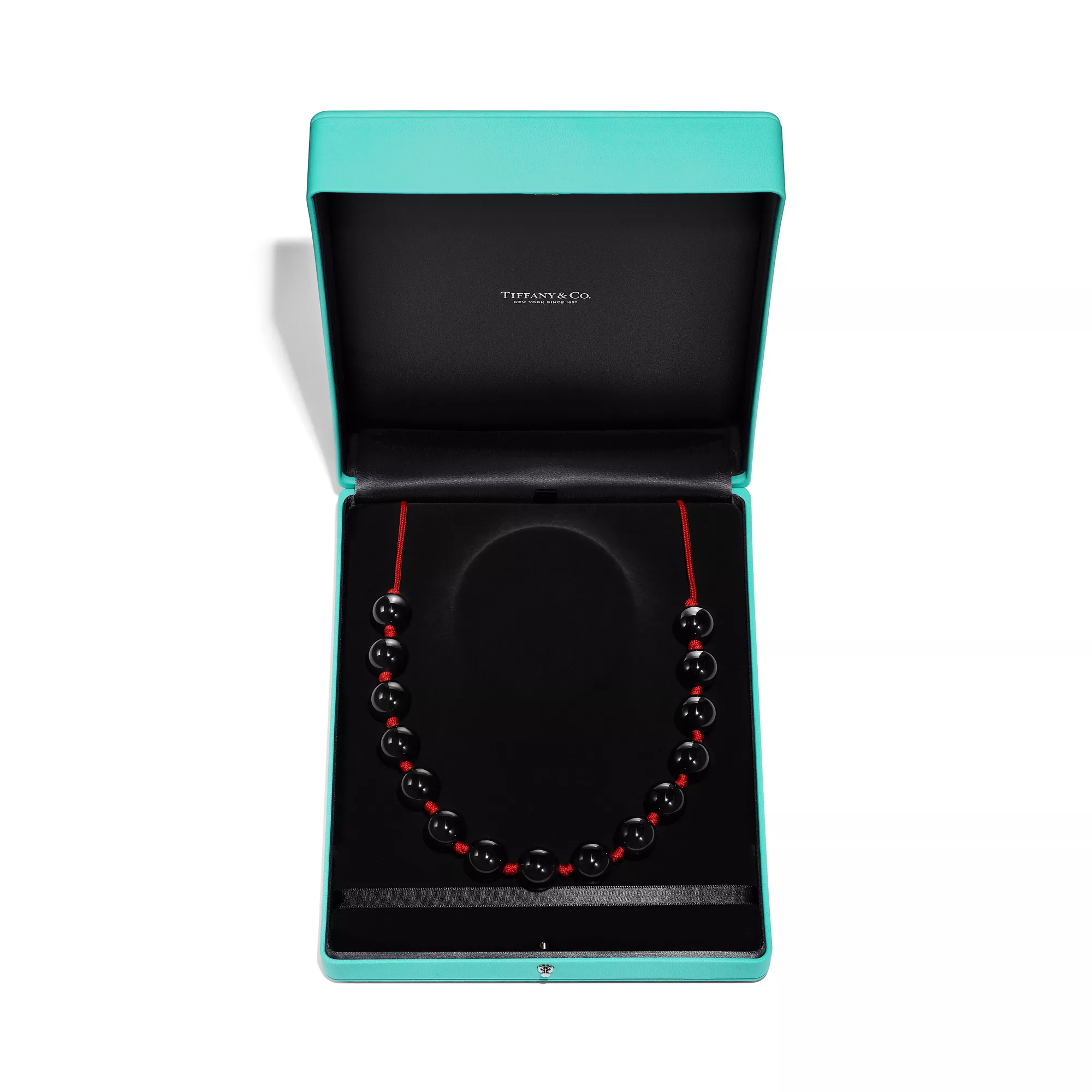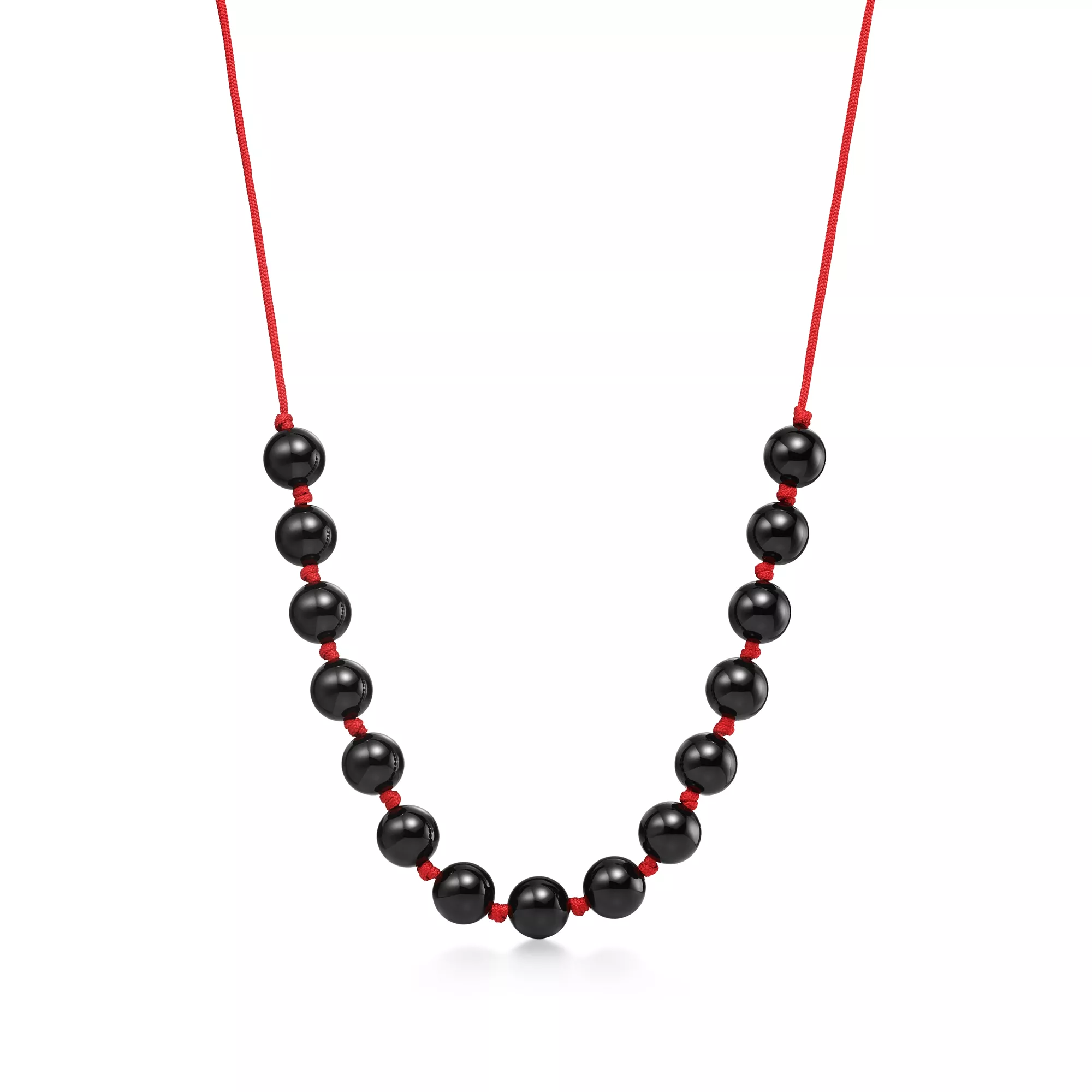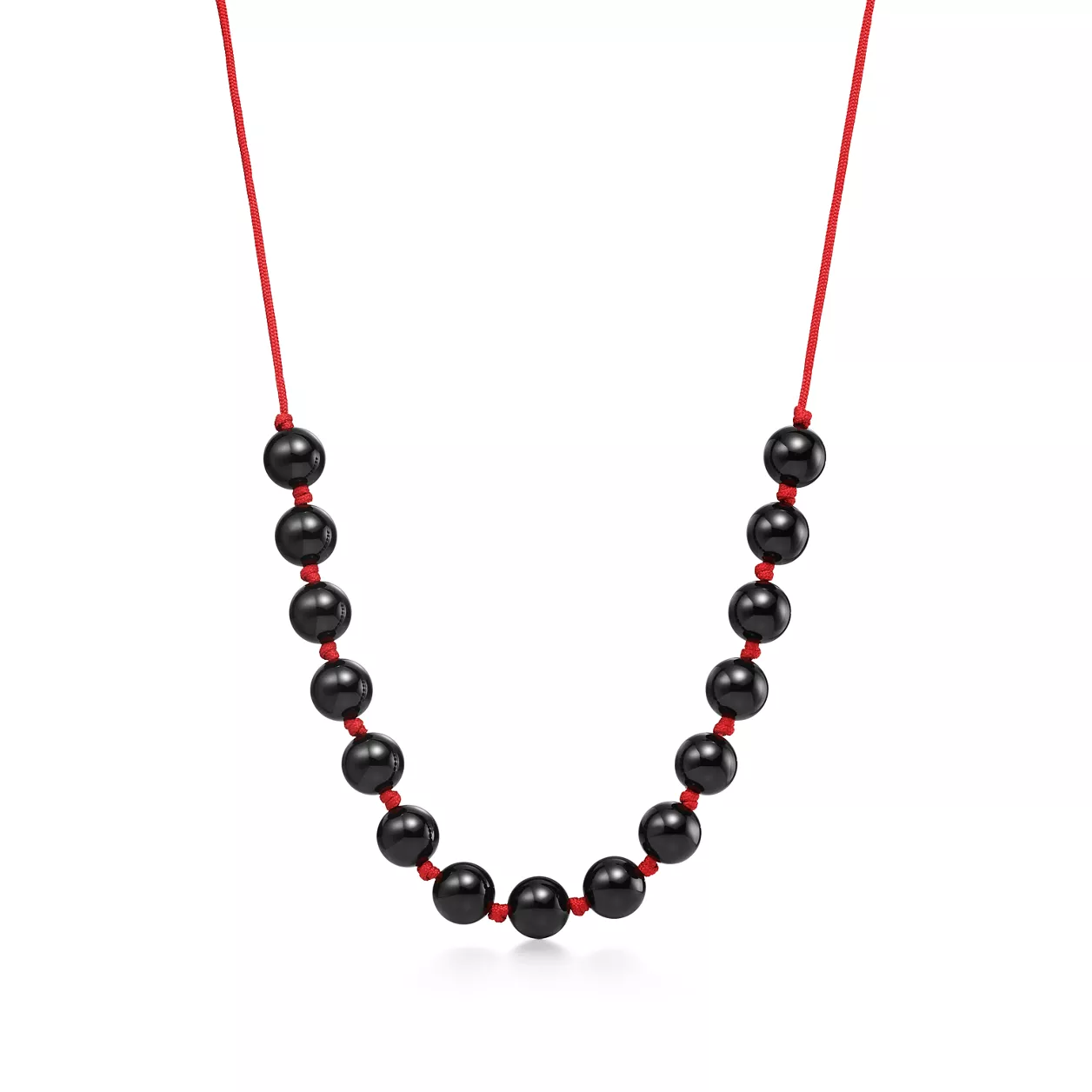 4. Elsa Peretti®:Sphere Necklace of Black Nephrite Jade with Red Silk