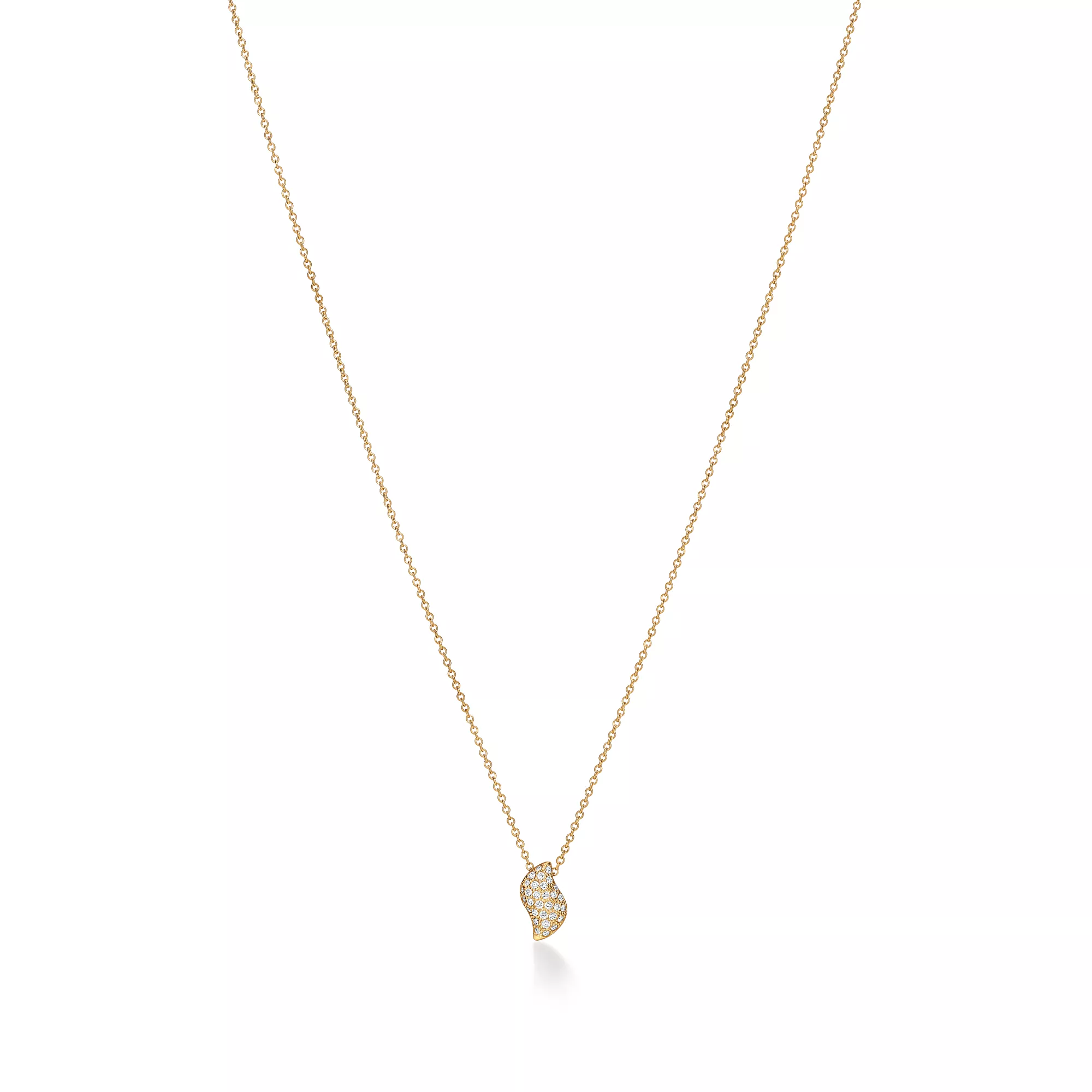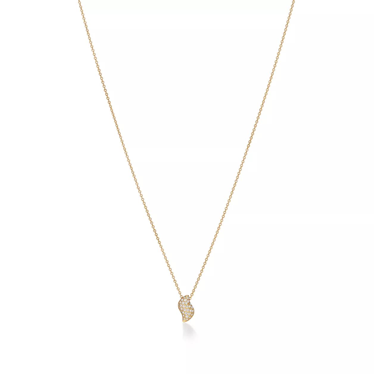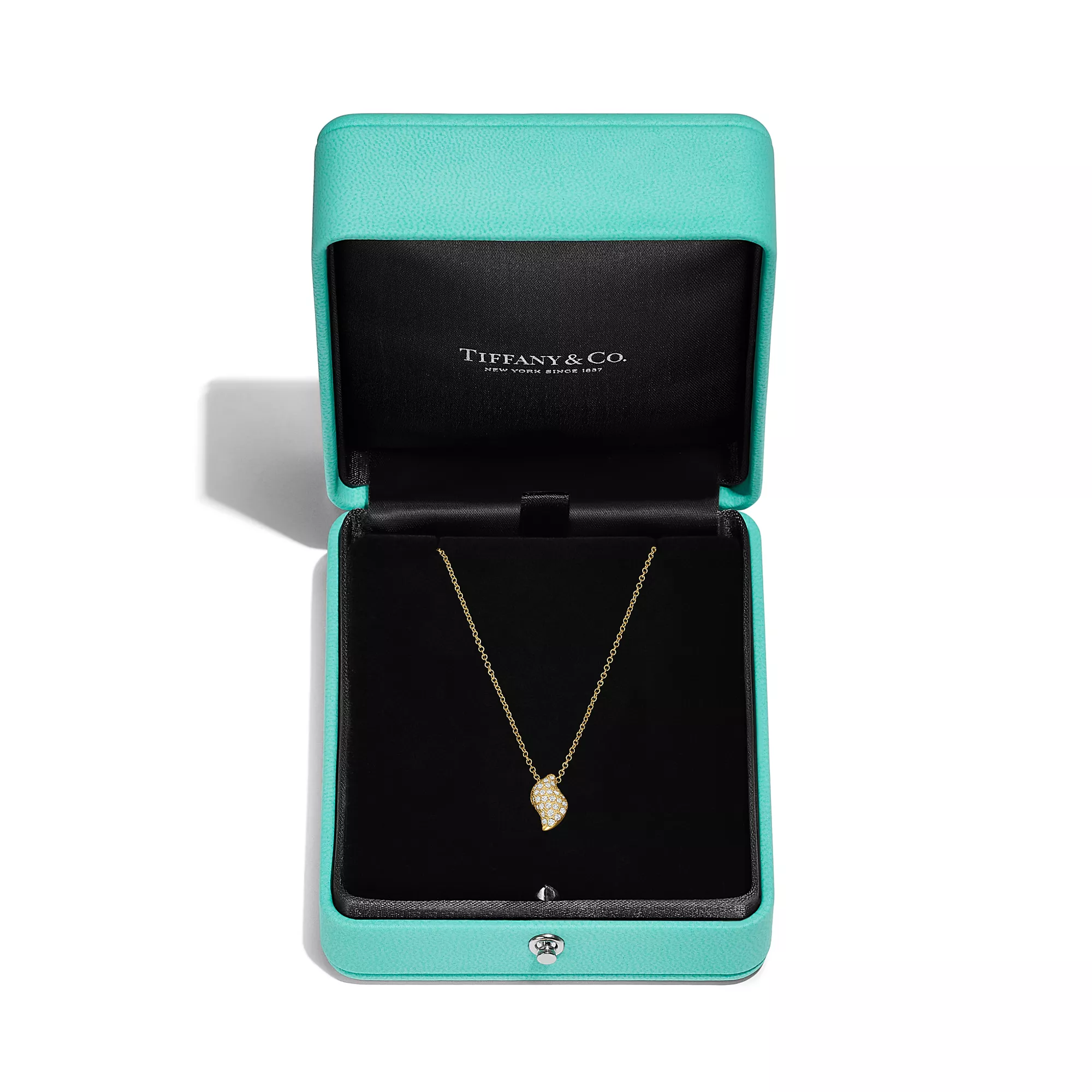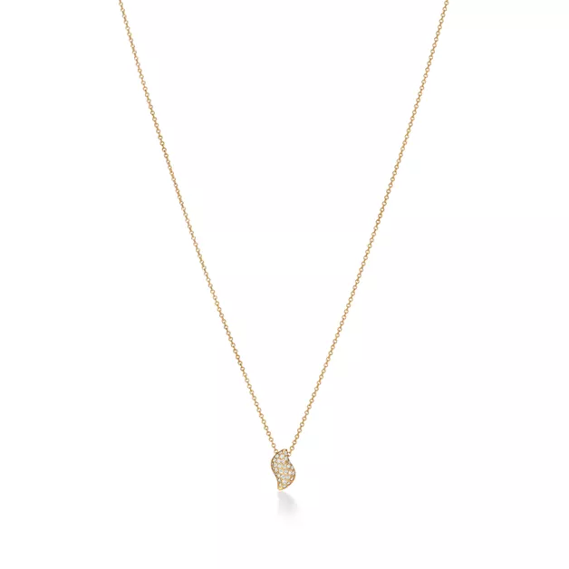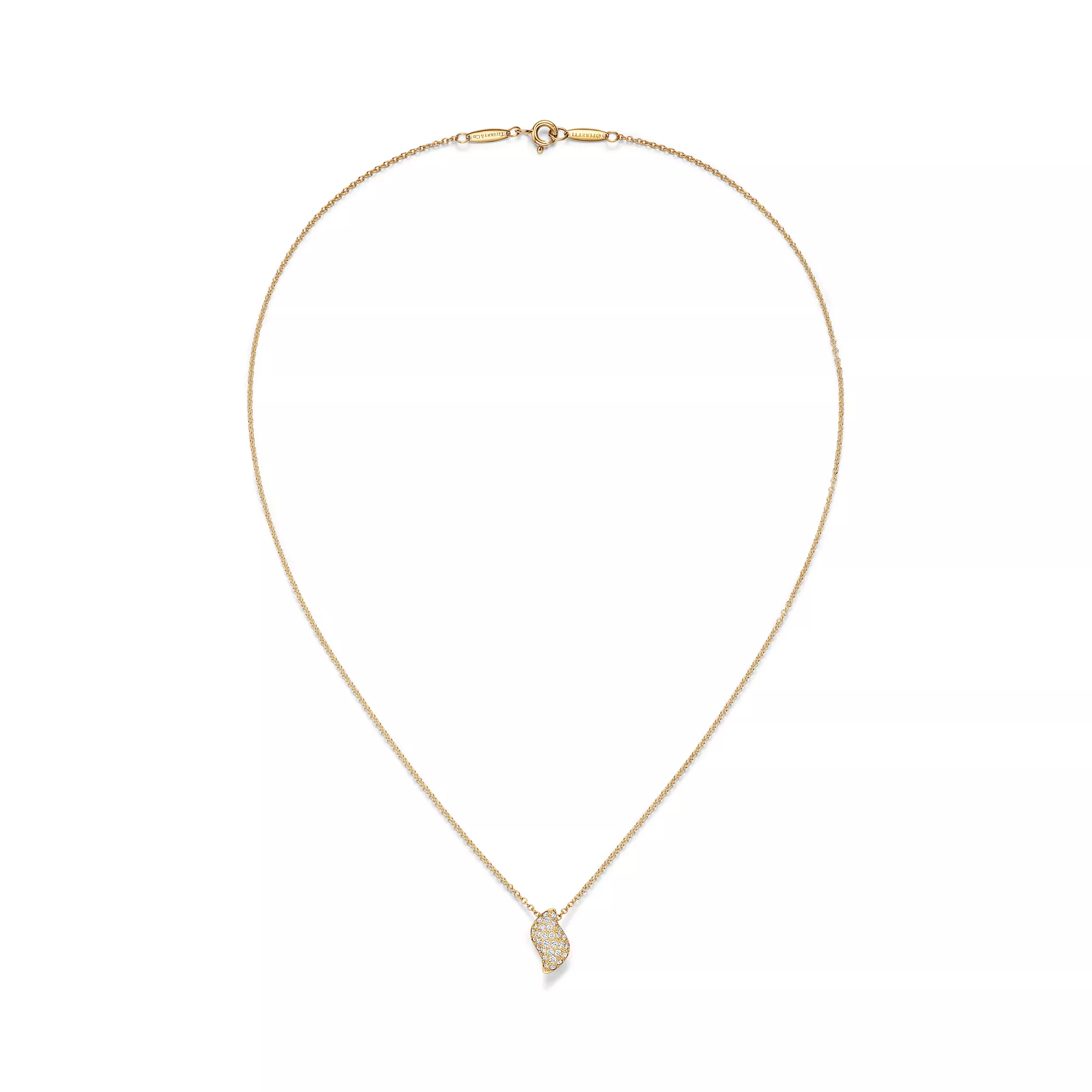 4. Elsa Peretti®:Mini Feather Pendant in Yellow Gold with Pavé Diamonds