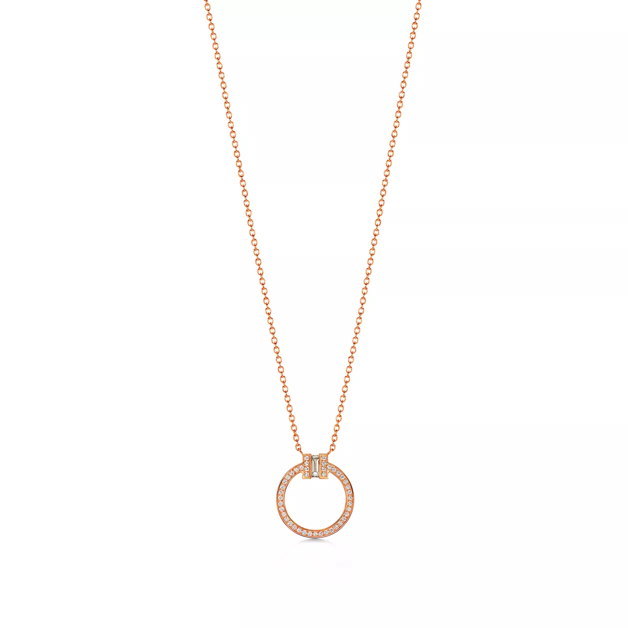 4. Tiffany T:Diamond Pendant in Rose Gold with a Baguette Diamond