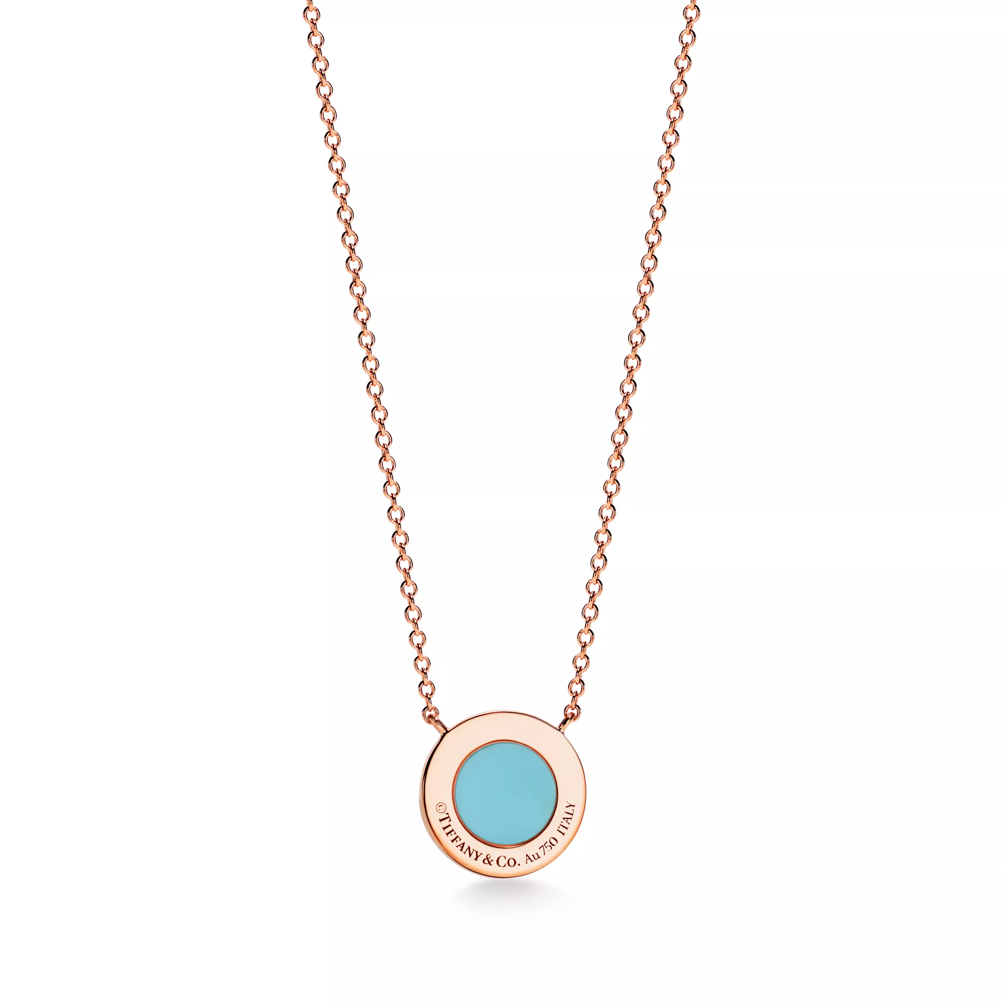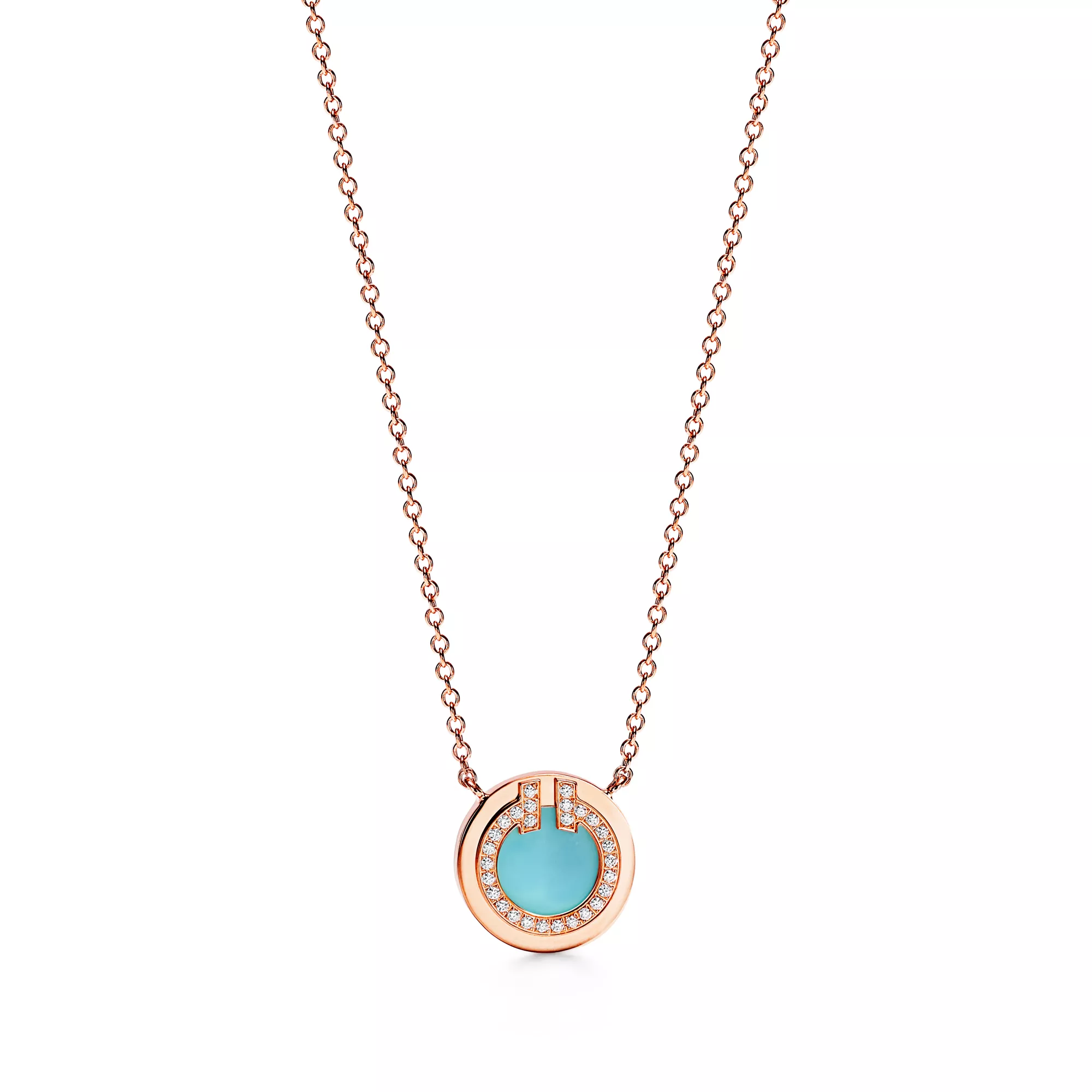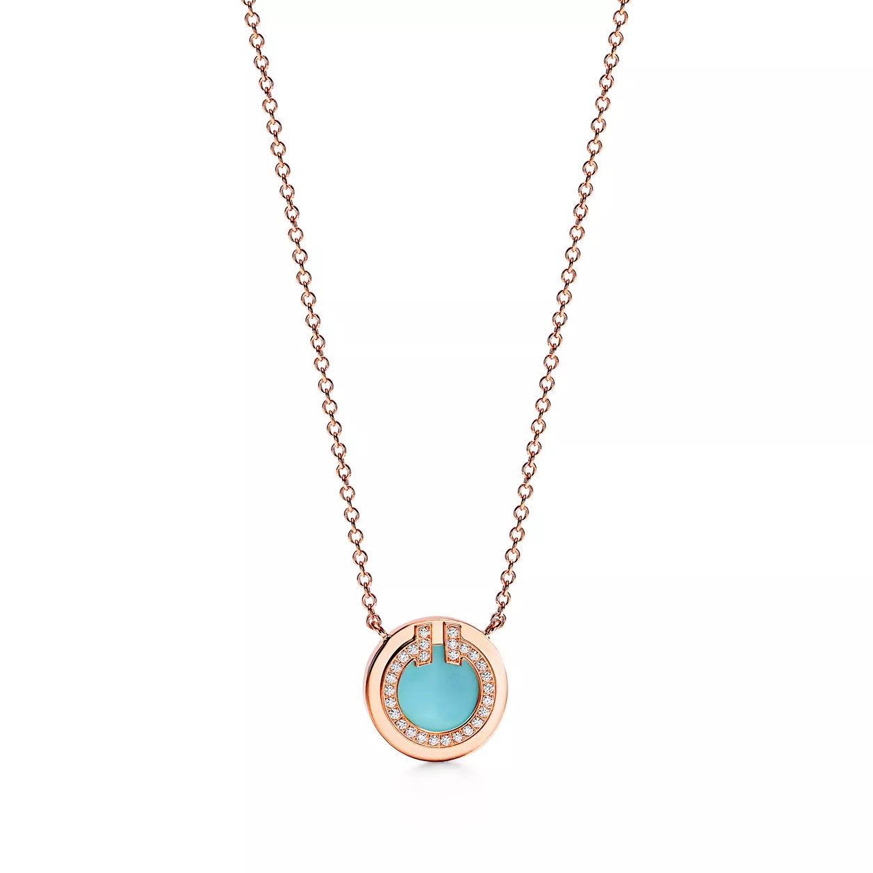 4. Tiffany T:Diamond and Turquoise Circle Pendant in Rose Gold