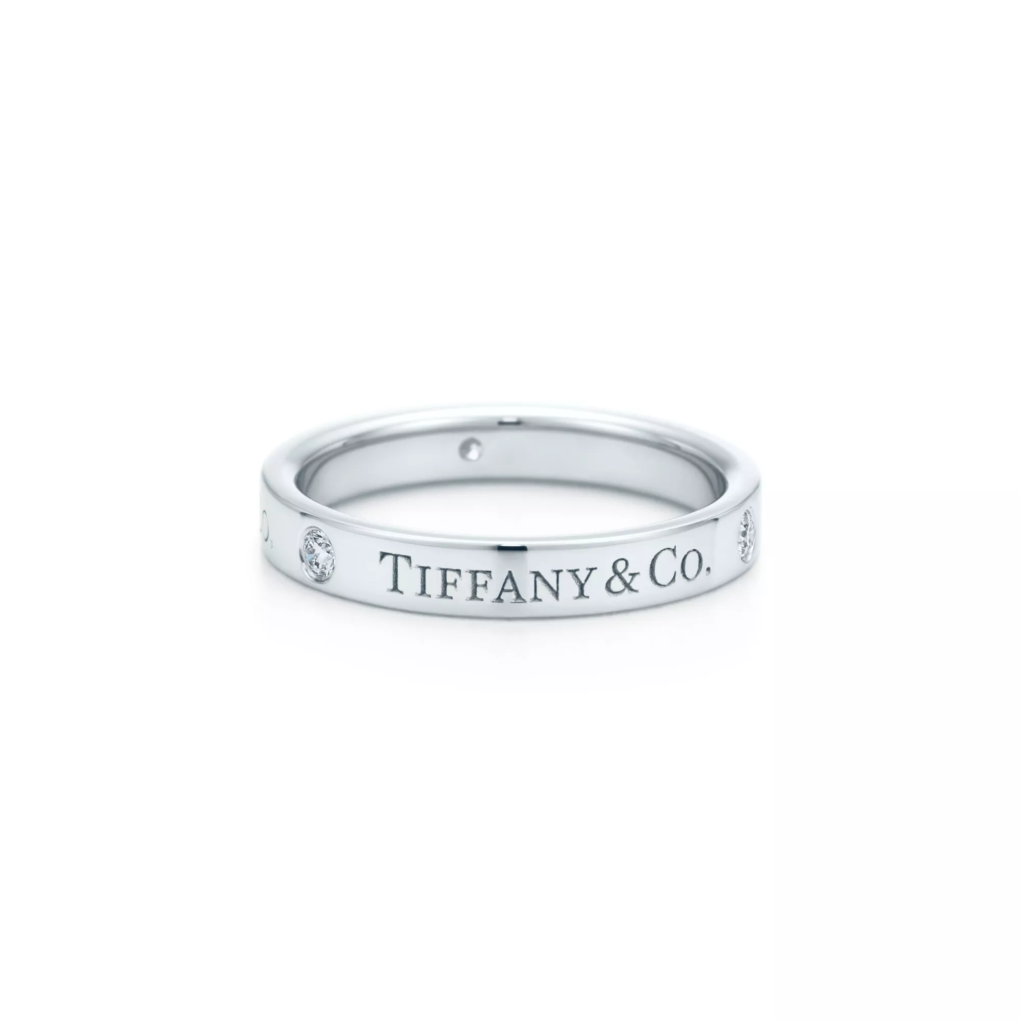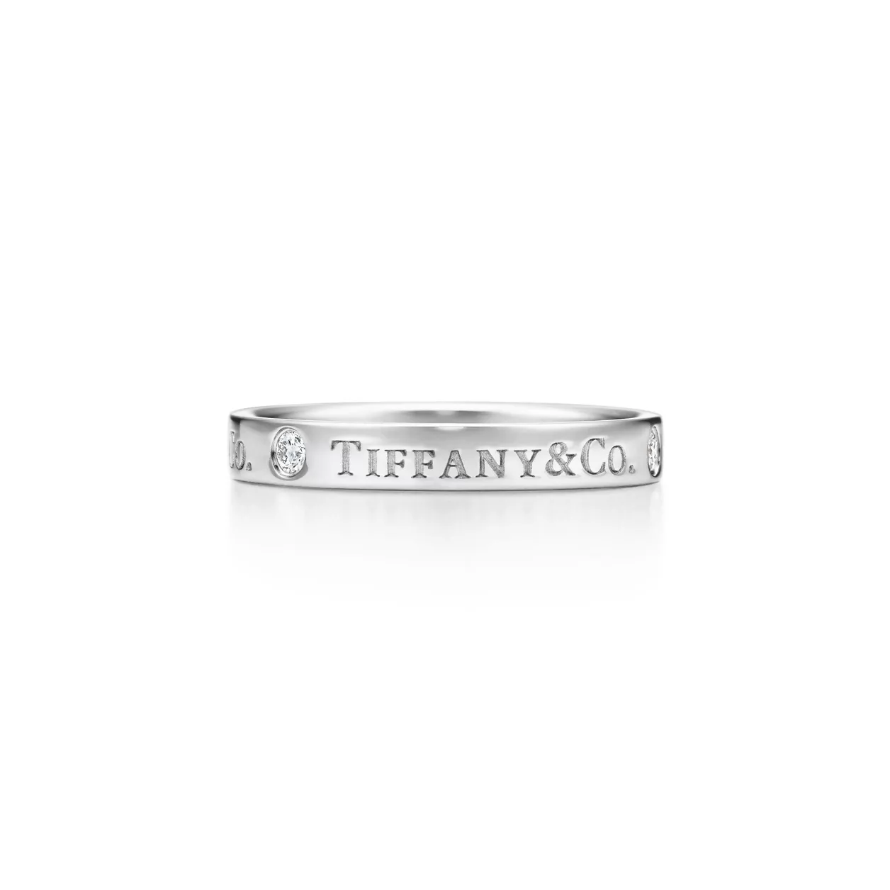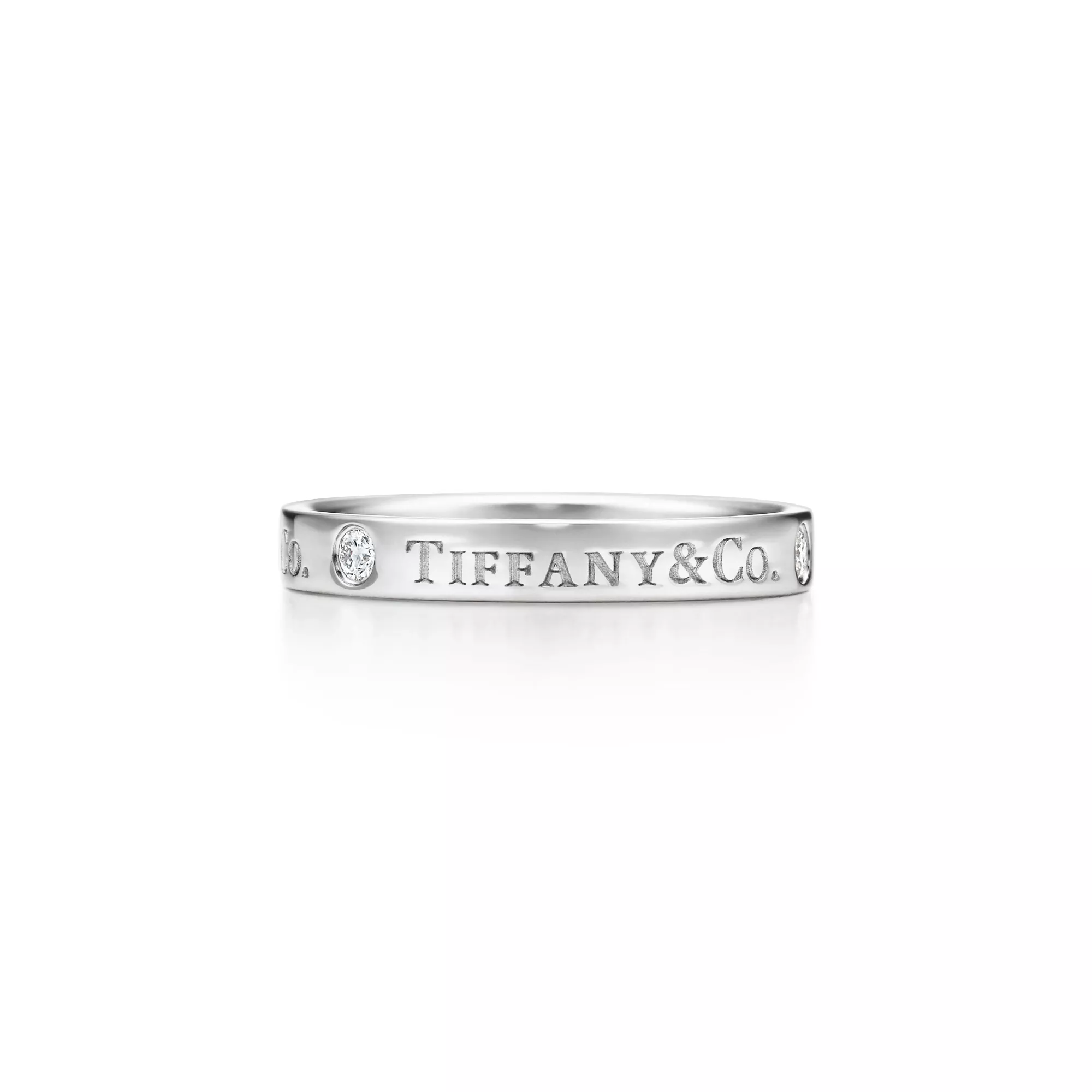T&CO.® band ring with round brilliant diamonds in platinum. 3mm wide. Carat total weight .07.