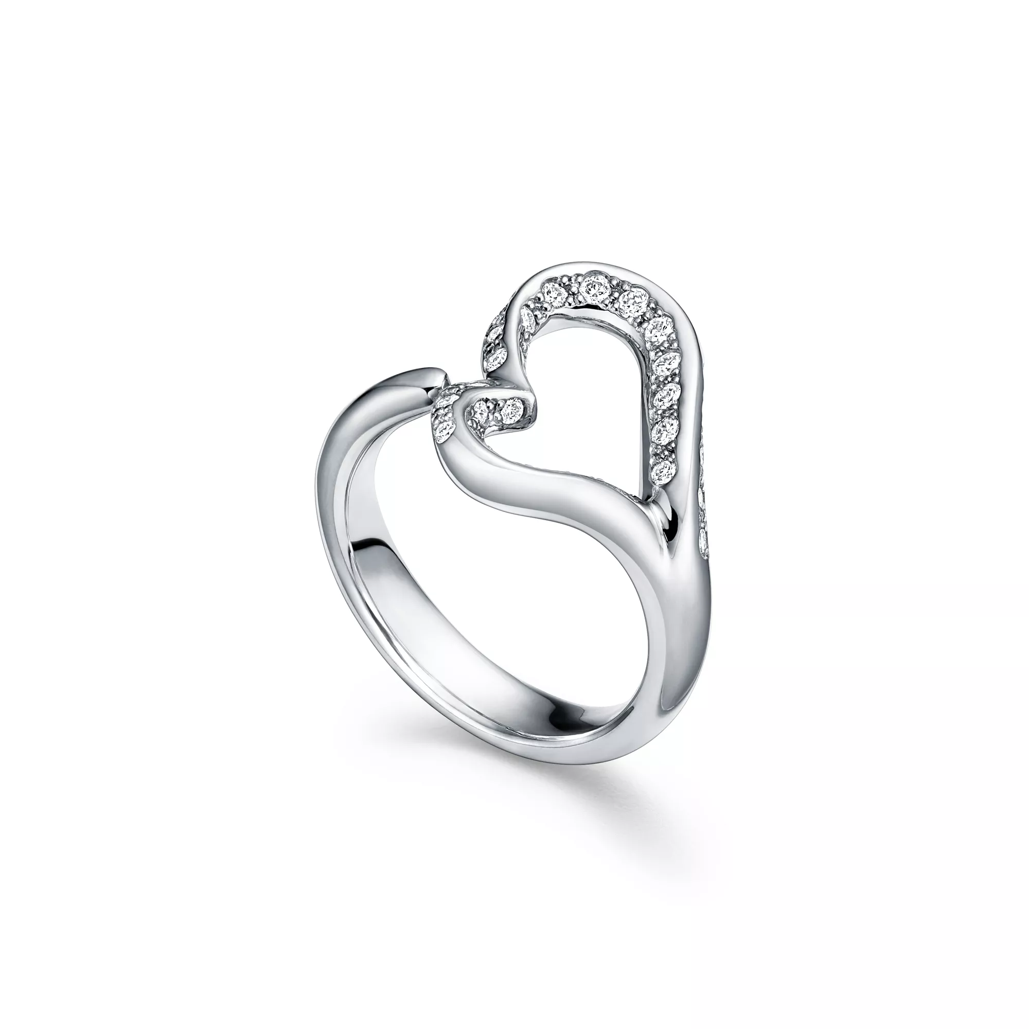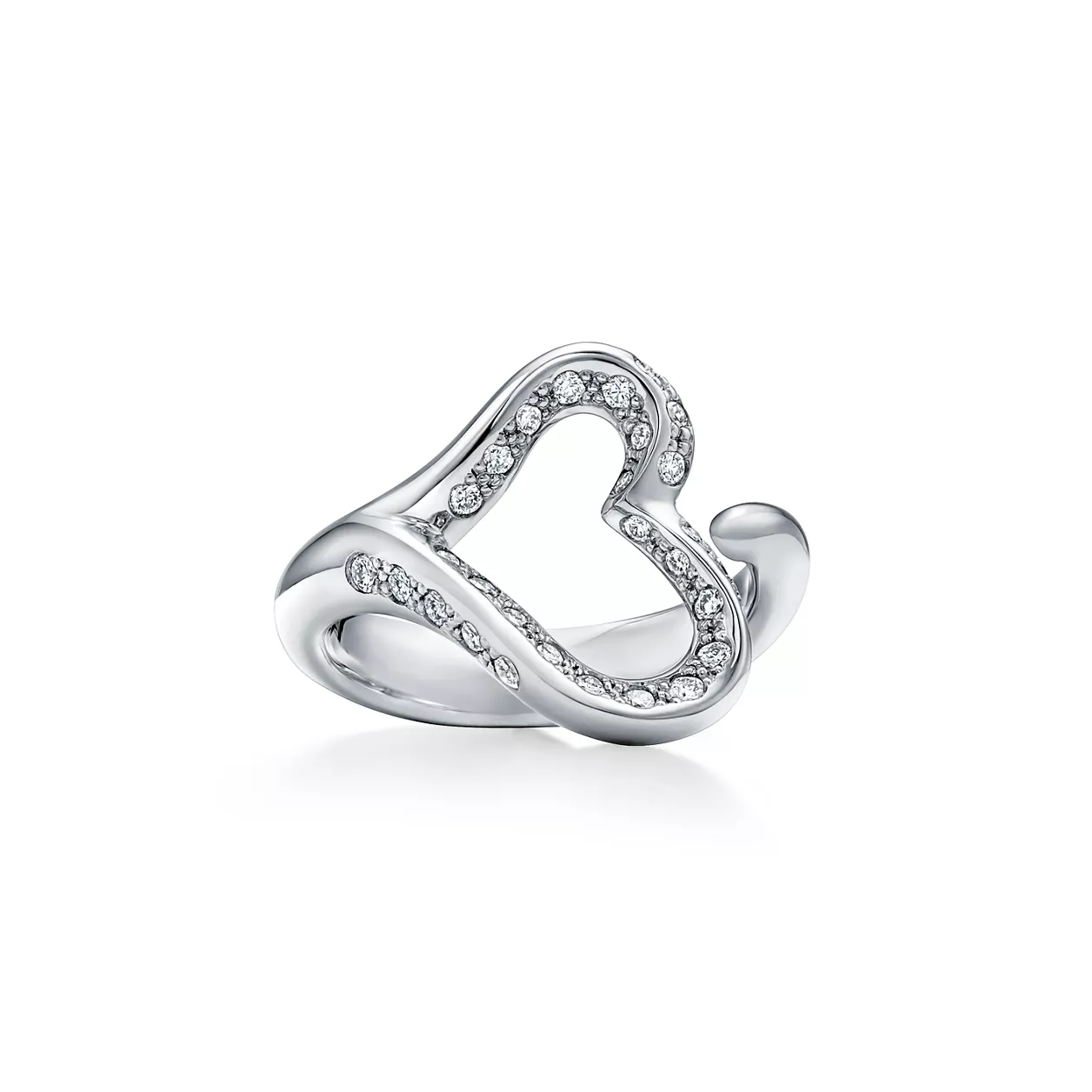 4. Elsa Peretti®:Open Heart Ring in Platinum with Pavé Diamonds