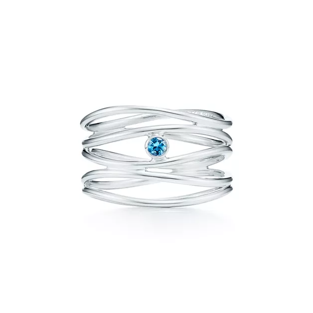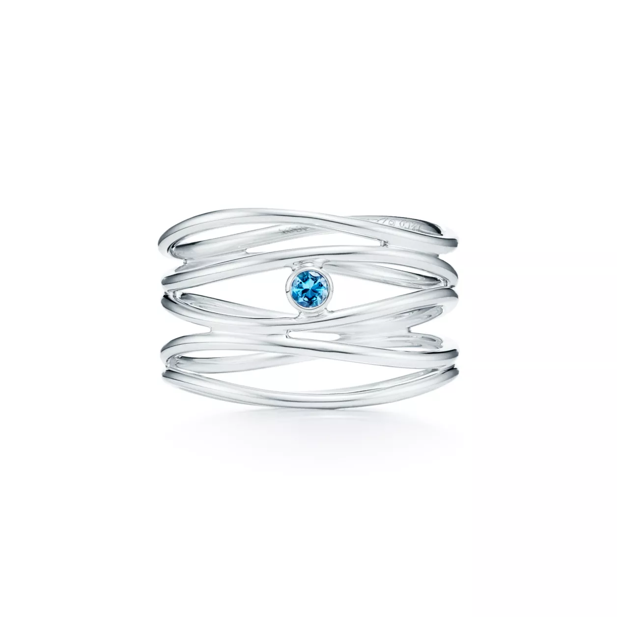 Sterling silver with a round aquamarineCarat weight .05Original designs copyrighted by the Nando and Elsa Peretti Foundation -