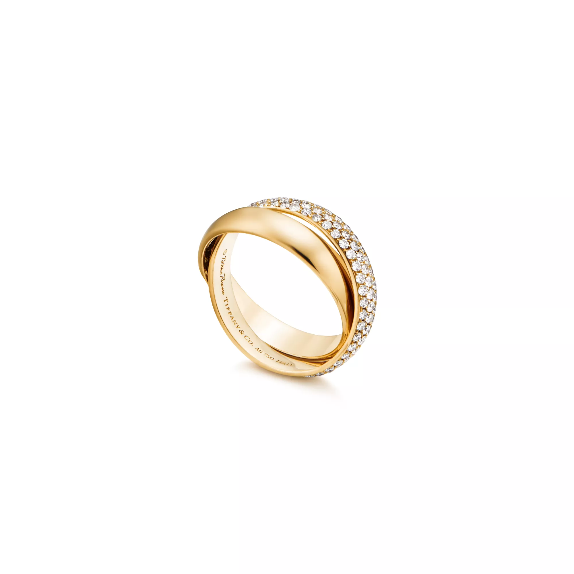 18k gold with round brilliant diamondsTwo-band designCarat total weight .85Original designs copyrighted by Paloma Picasso -