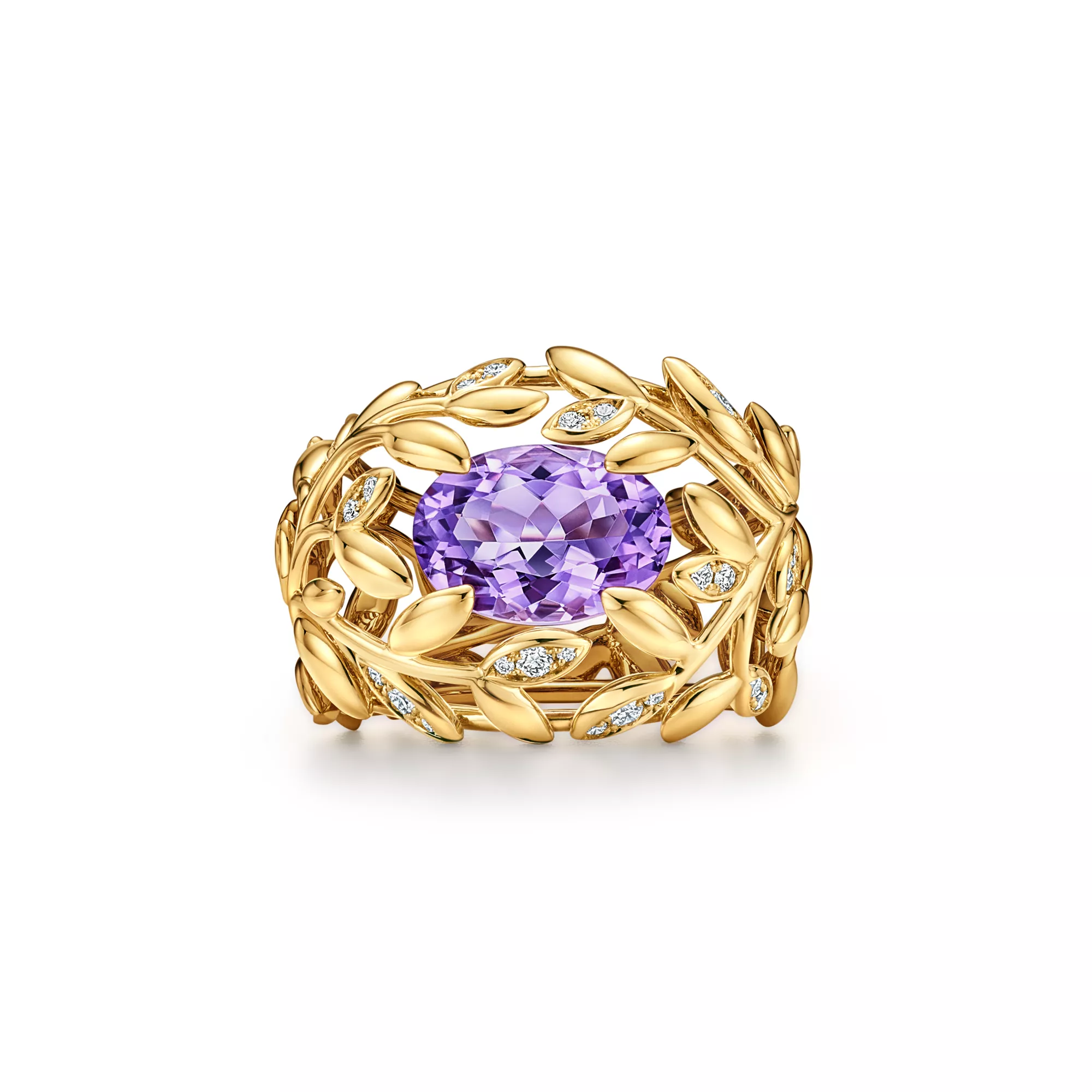 Paloma Picasso® Olive Leaf Amethyst Ring in Yellow Gold with Diamonds