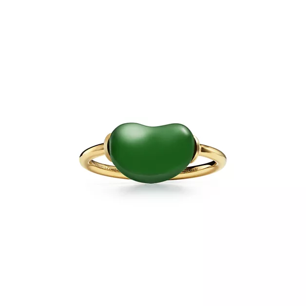 4. Elsa Peretti®:Bean® design Ring in Yellow Gold with Green Nephrite Jade
