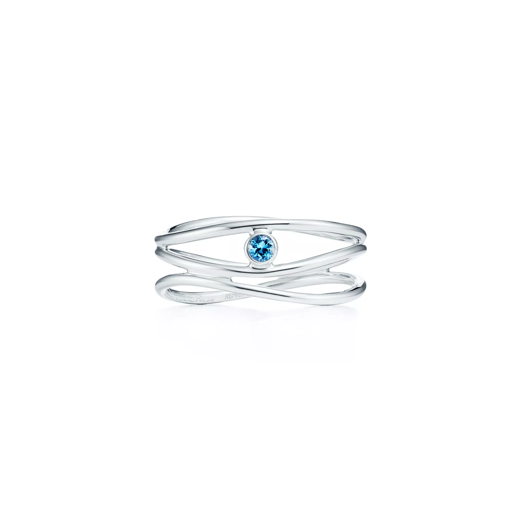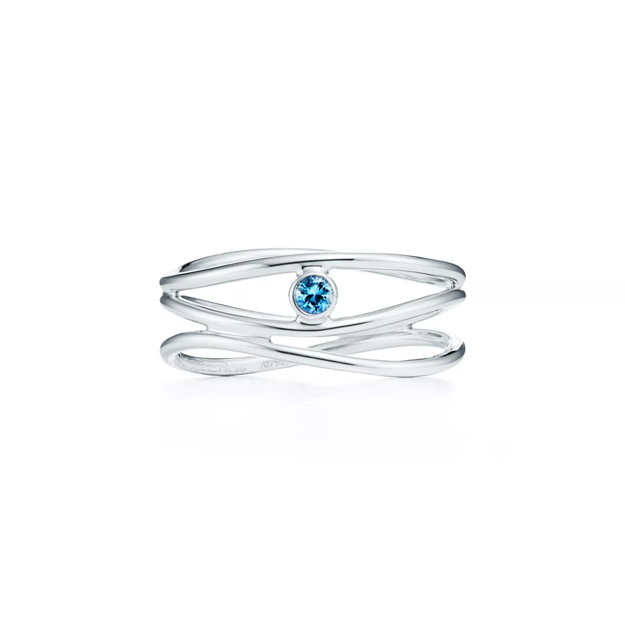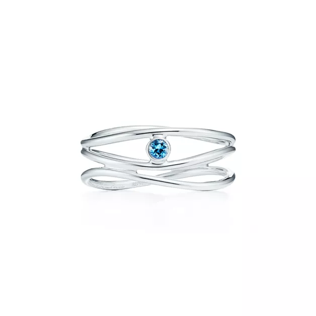 Sterling silver with a round aquamarineCarat weight .05Original designs copyrighted by the Nando and Elsa Peretti Foundation -