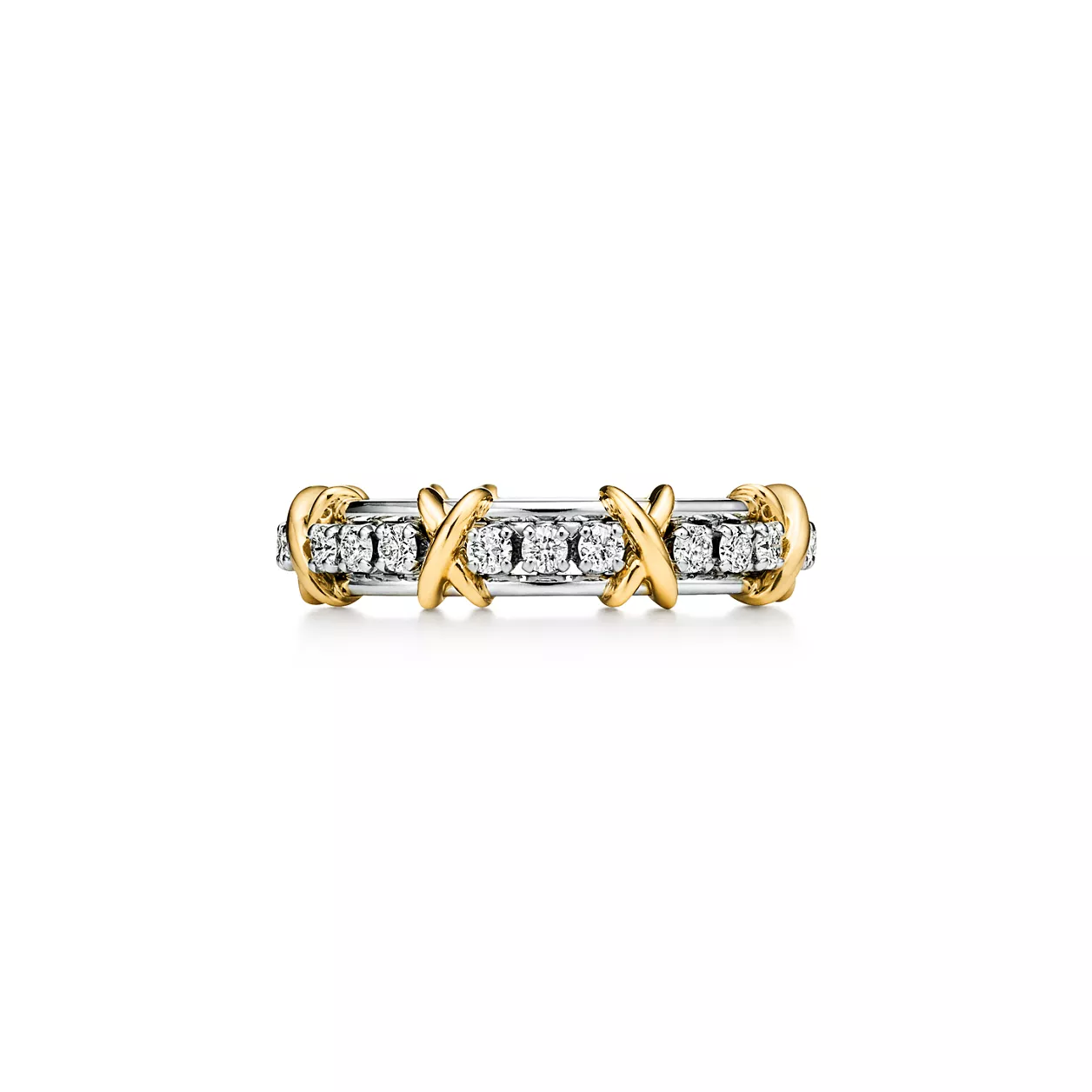 Sixteen Stone by Tiffany Narrow Ring in Platinum and Yellow Gold with Diamonds