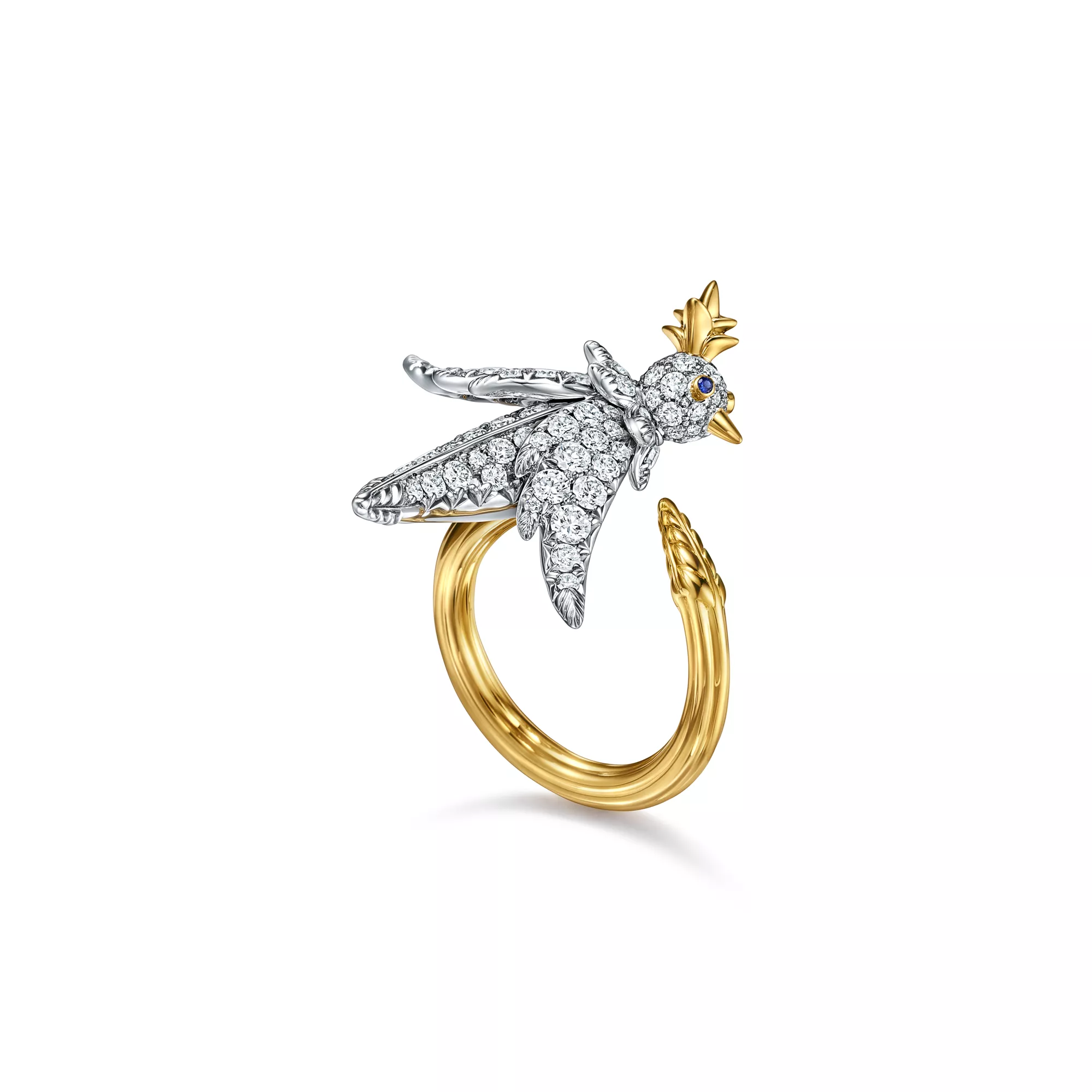 Bird on a Rock by Tiffany Bird Ring in Platinum and Gold with Diamonds