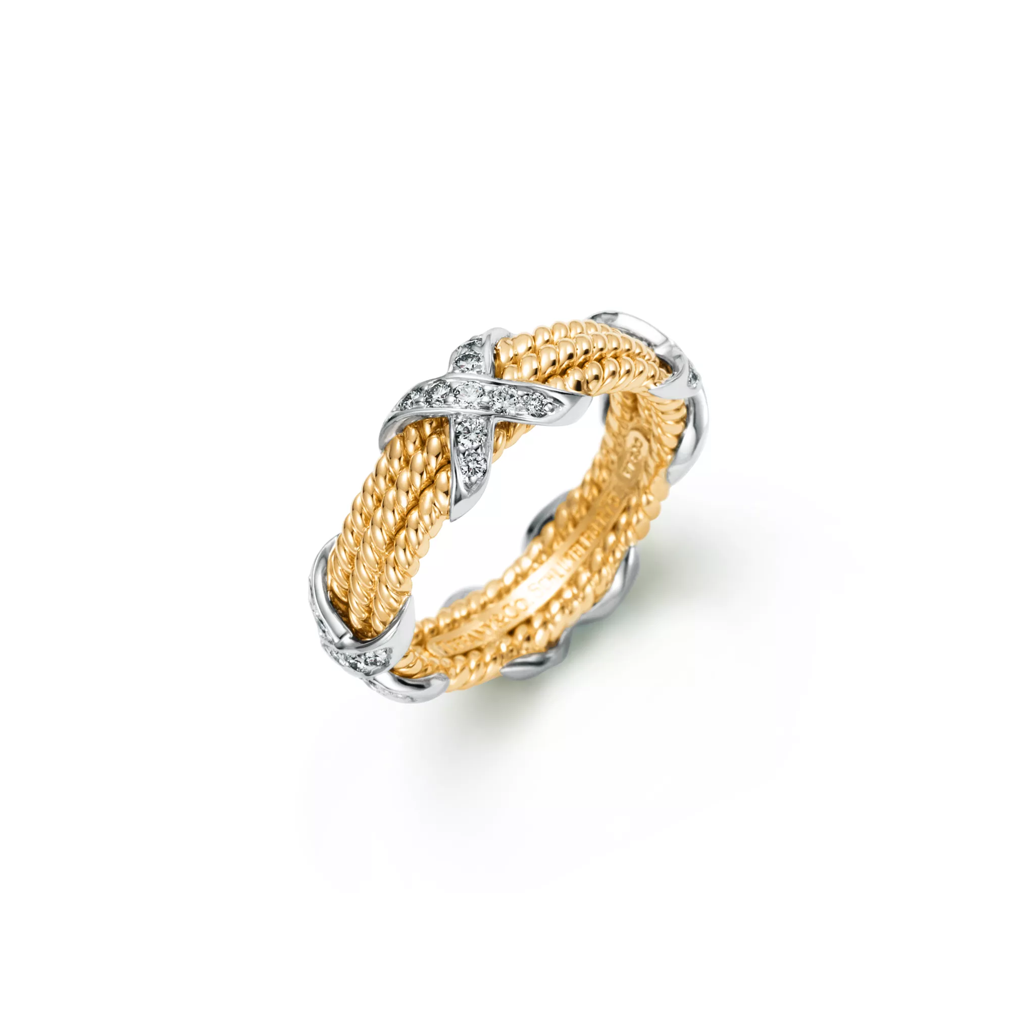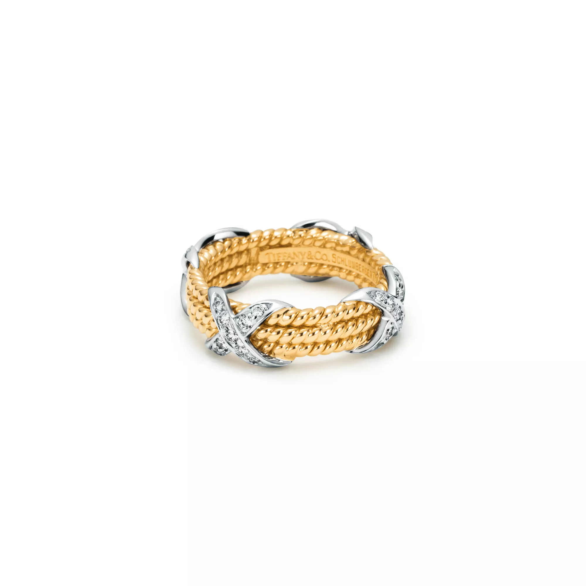 Tiffany Rope Three-row X Ring in Yellow Gold and Platinum with Diamonds