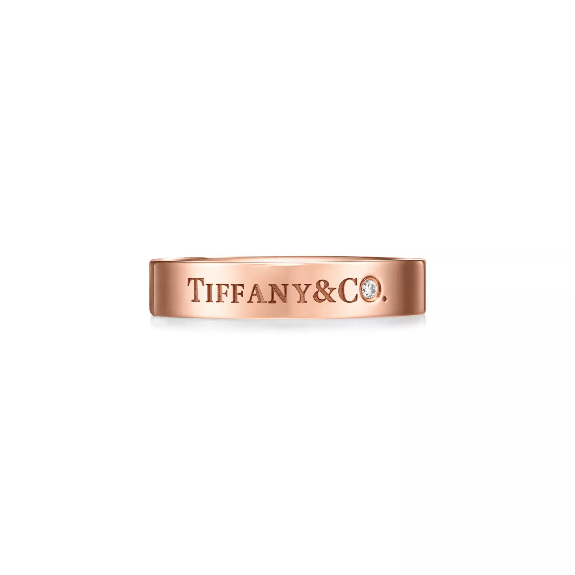 This T&CO.® band ring celebrates commitment with a meticulously crafted design made to withstand time. The 18k rose gold band features an engraved "T&CO." with a diamond accent. Wear it as a wedding band or mix and match with other Tiffany rings to make a statement.
