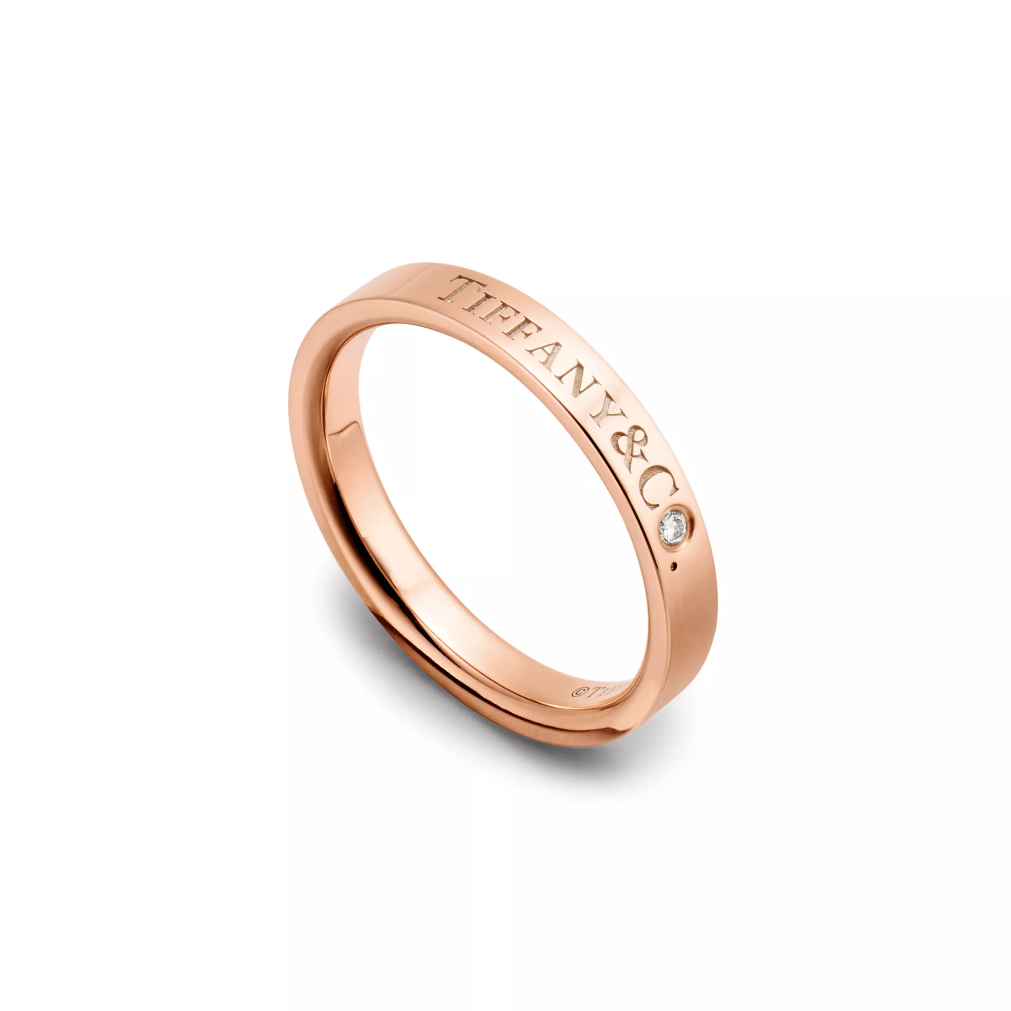 This T&CO.® band ring celebrates commitment with a meticulously crafted design made to withstand time. The 18k rose gold band features an engraved "T&CO." with a diamond accent. Wear it as a wedding band or mix and match with other Tiffany rings to make a statement.