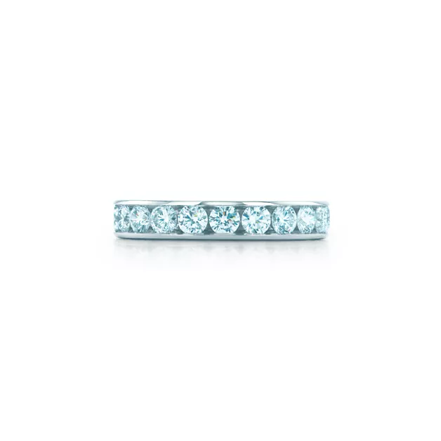 Platinum with a full circle of round brilliant diamonds3.9 mm wideChannel settingCarat total weight 1.89 -