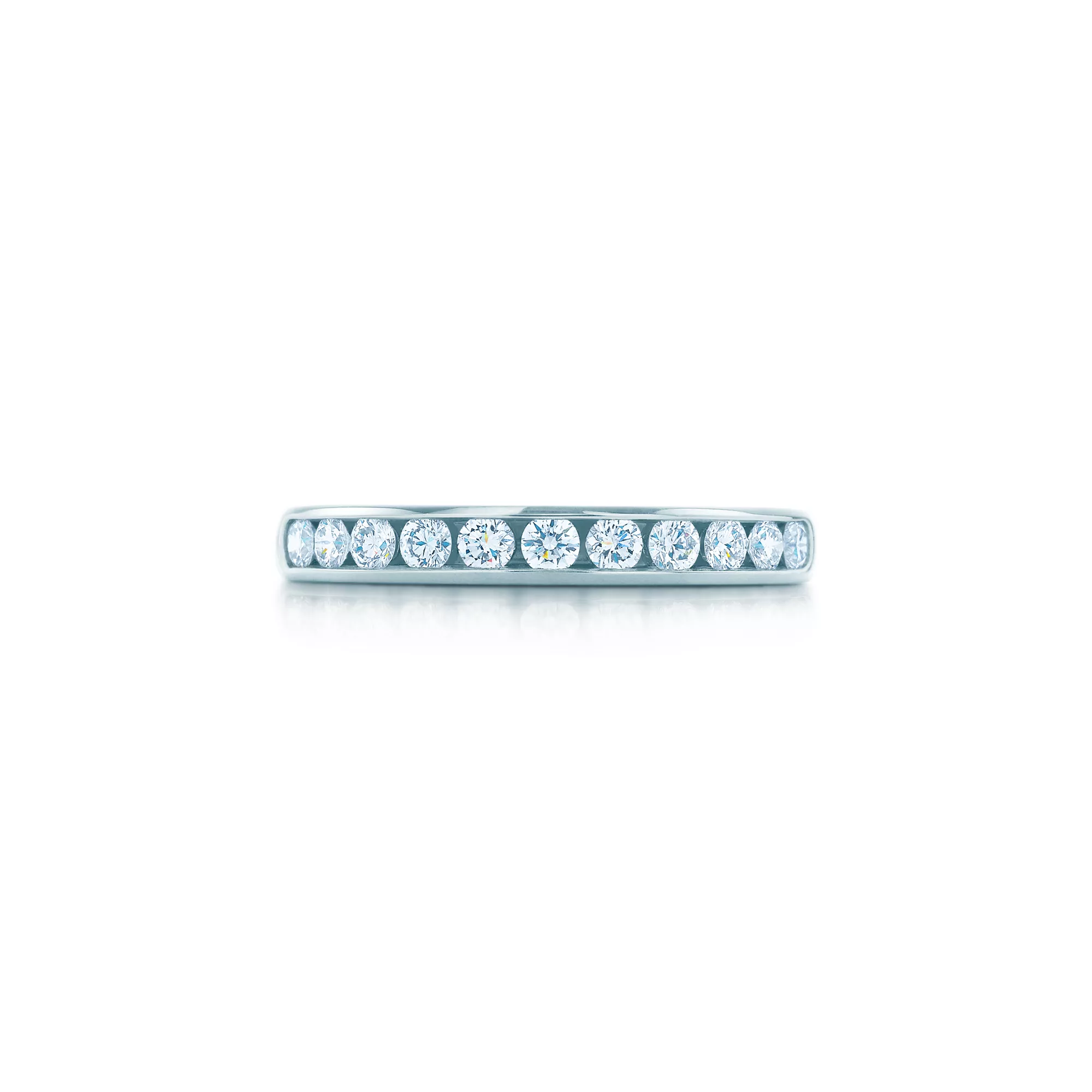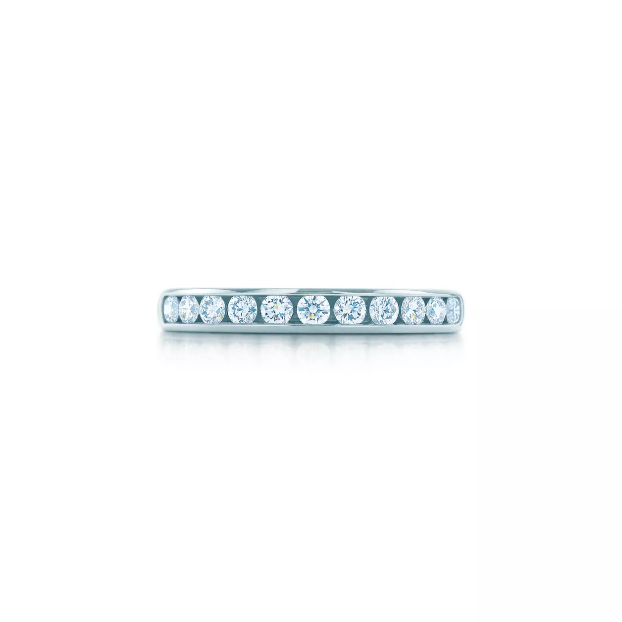 2. Tiffany® Setting:Wedding Band in Platinum with a Half-circle of Diamonds, 3 mm